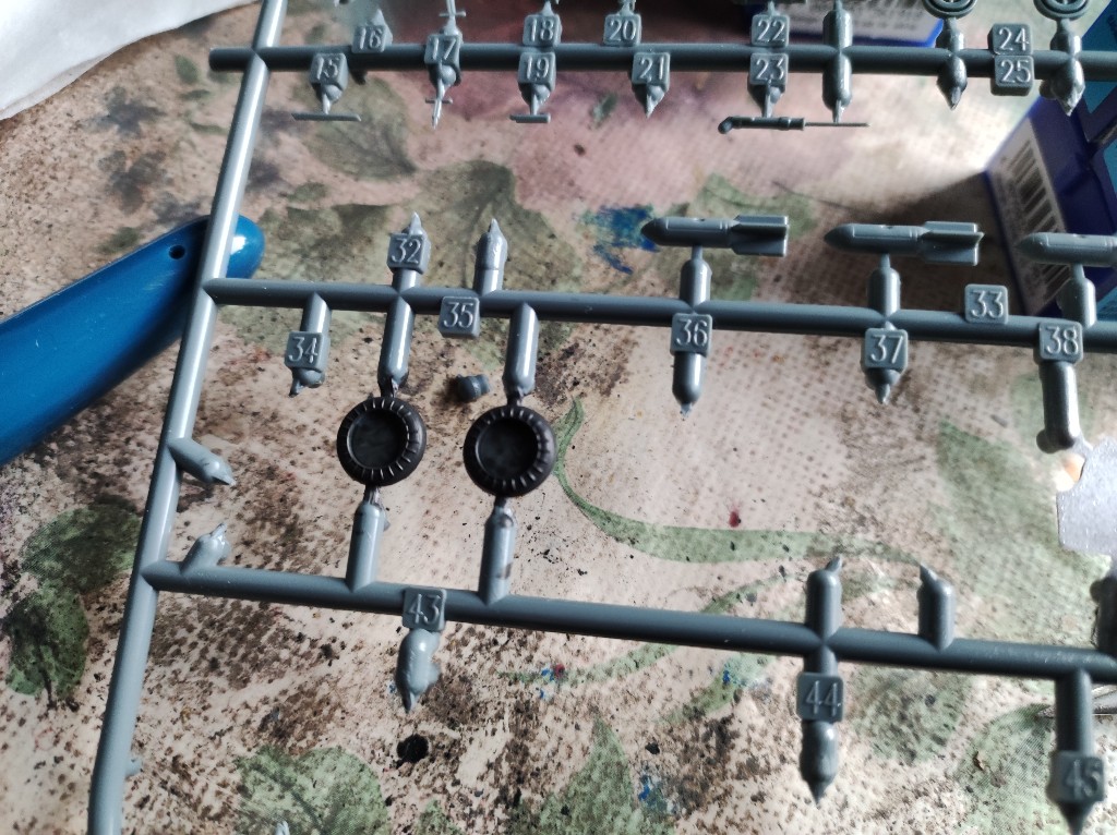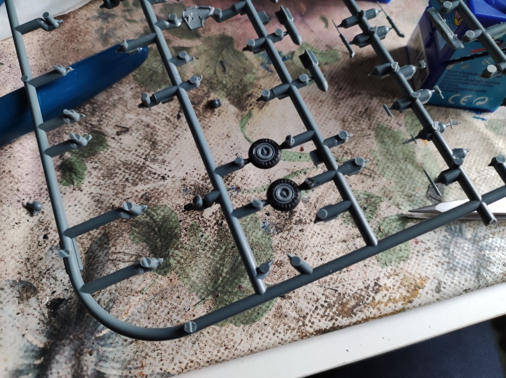 Das mit dem Fahrwerksreifen gefällt mir, da kann man wirklich gut lackieren. Zunächst werden die Reifen so lackiert