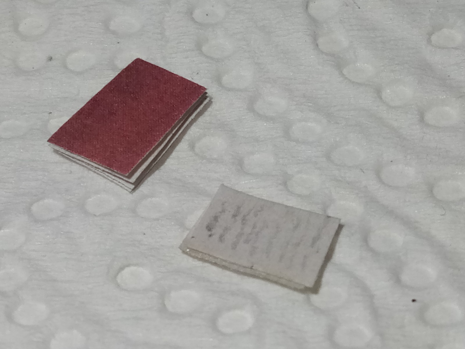 Diese wurden trocken mit dem Pinsel auf die Farbe aufgerieben.