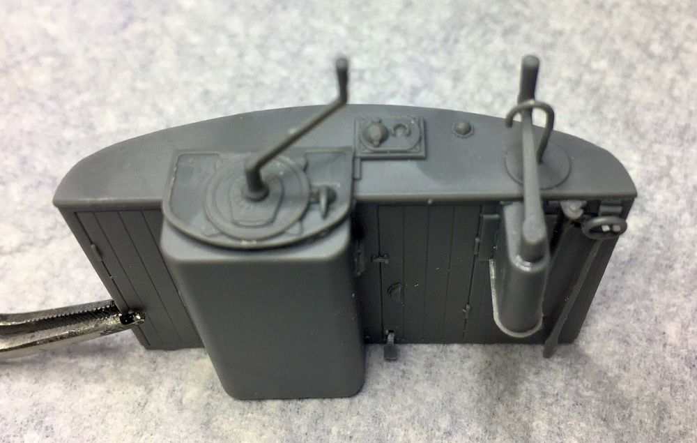 Auch das Bremsgestänge ist zur Bemalung bereit.
