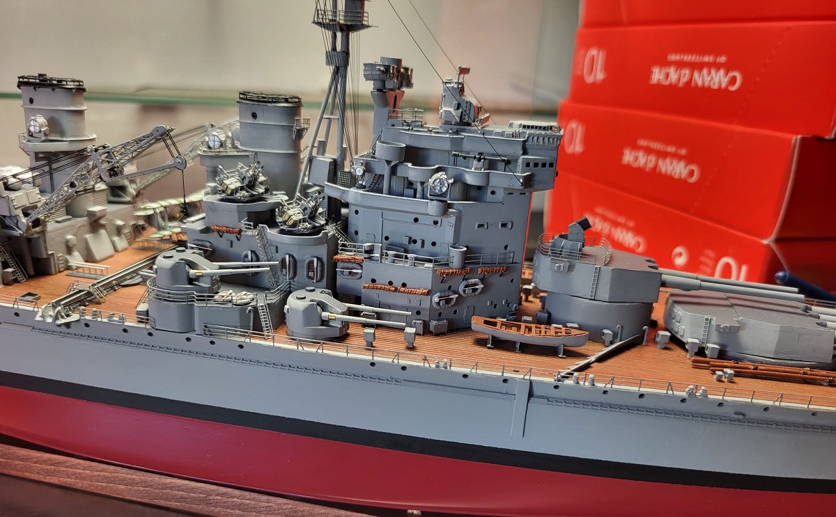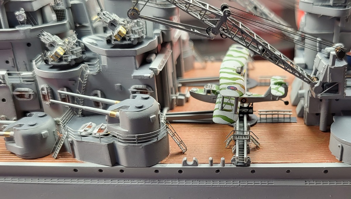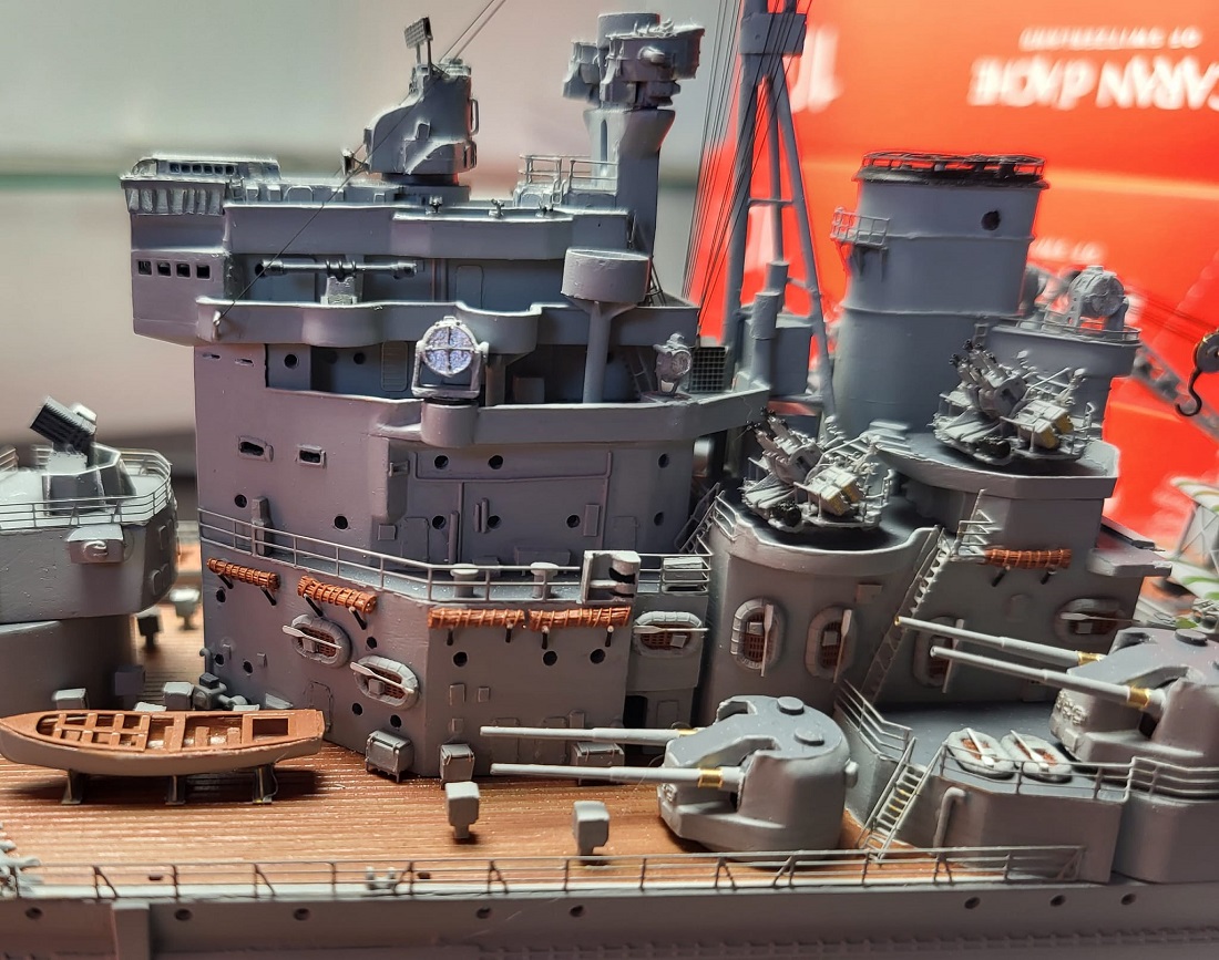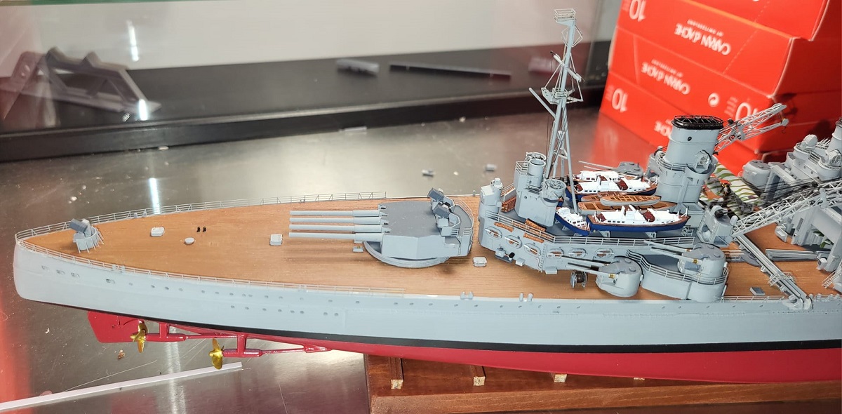 werde weiter von forne nach hinter die fehlender details anbauen und die railings werden angebracht when alle Deckdetails fur das Teil des schiffes angebracht worden sind, beide Schiffseiten sind auf gleiche höhe gebracht und da SO viele Sachen schönn da sind, habe die neue angedeutet