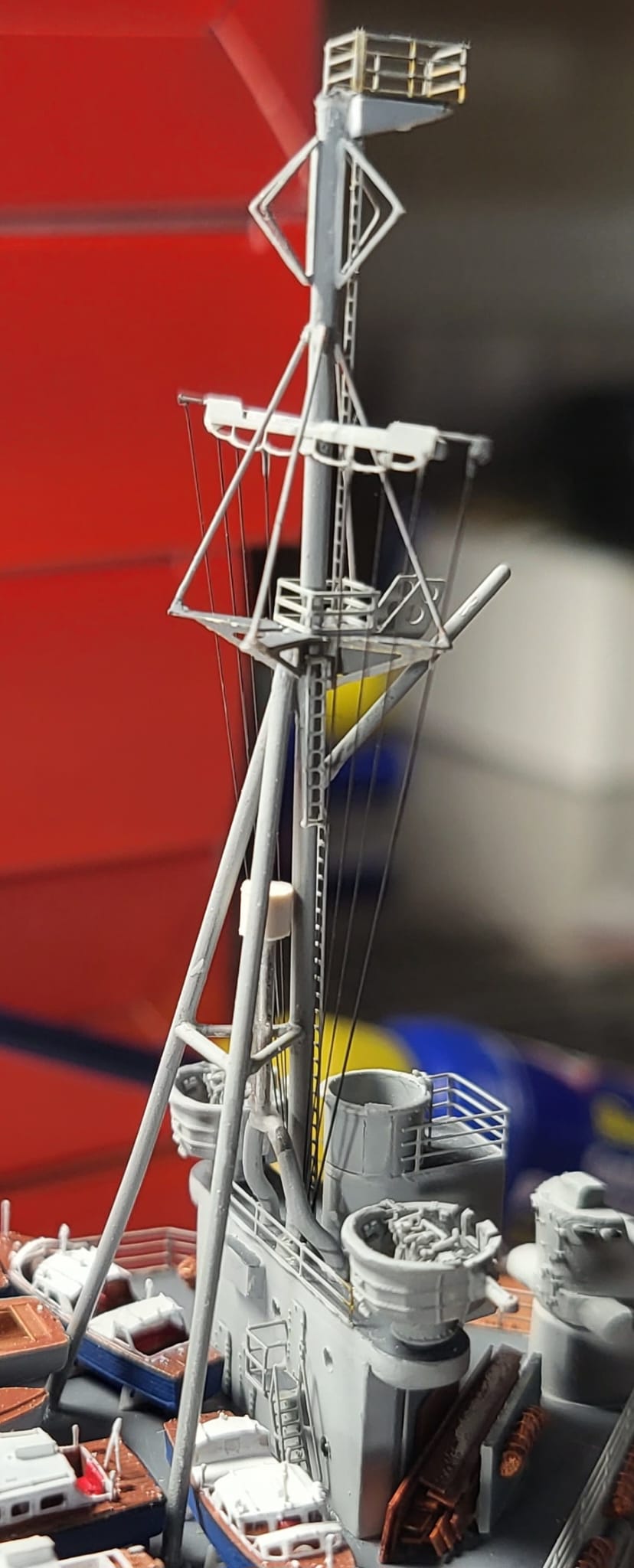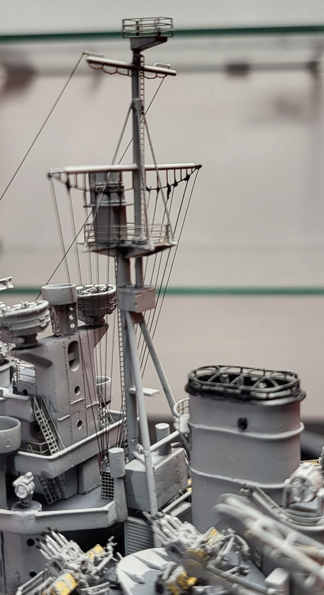Ich machte ein Bildcheck des echtes Schiffes und merkte plotzlich ... ich habe die ladder auf beide Masten vergessen, aber auch das "nicht im kit vorsenen stuck, im center der hintermastes... also ... das wahr nicht einfang mit den riggings schönn gemacht