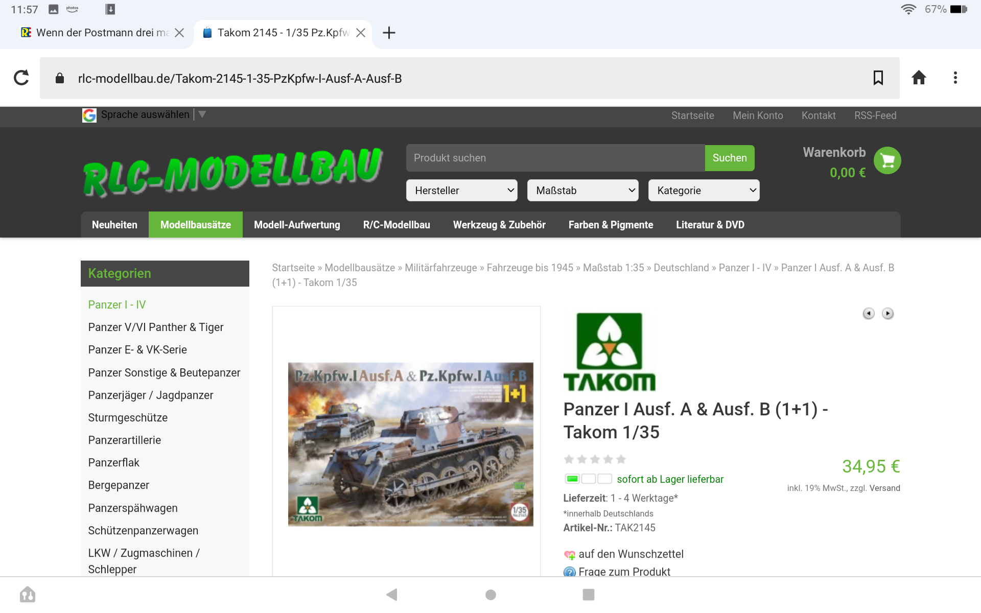 Zwei Panzer 1 in einem Paket für 43,95€. Ich glaube da kann ich nicht Meckern. :)