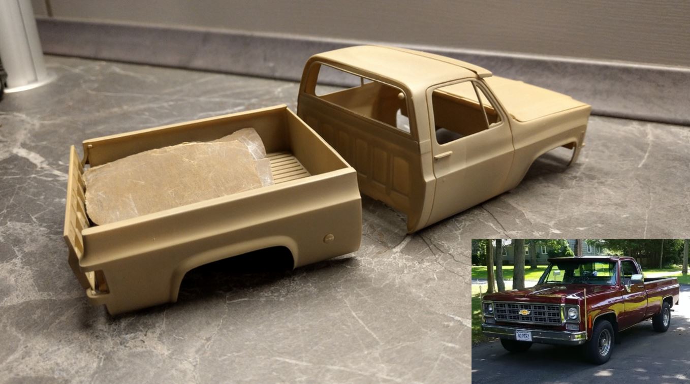 Wieder baue ich einen Chevy Pickup einem Vorbild nach. Sonnenschute ist fertig, ansonsten wird er Serie. Originalfarbton leigt schon bereit.