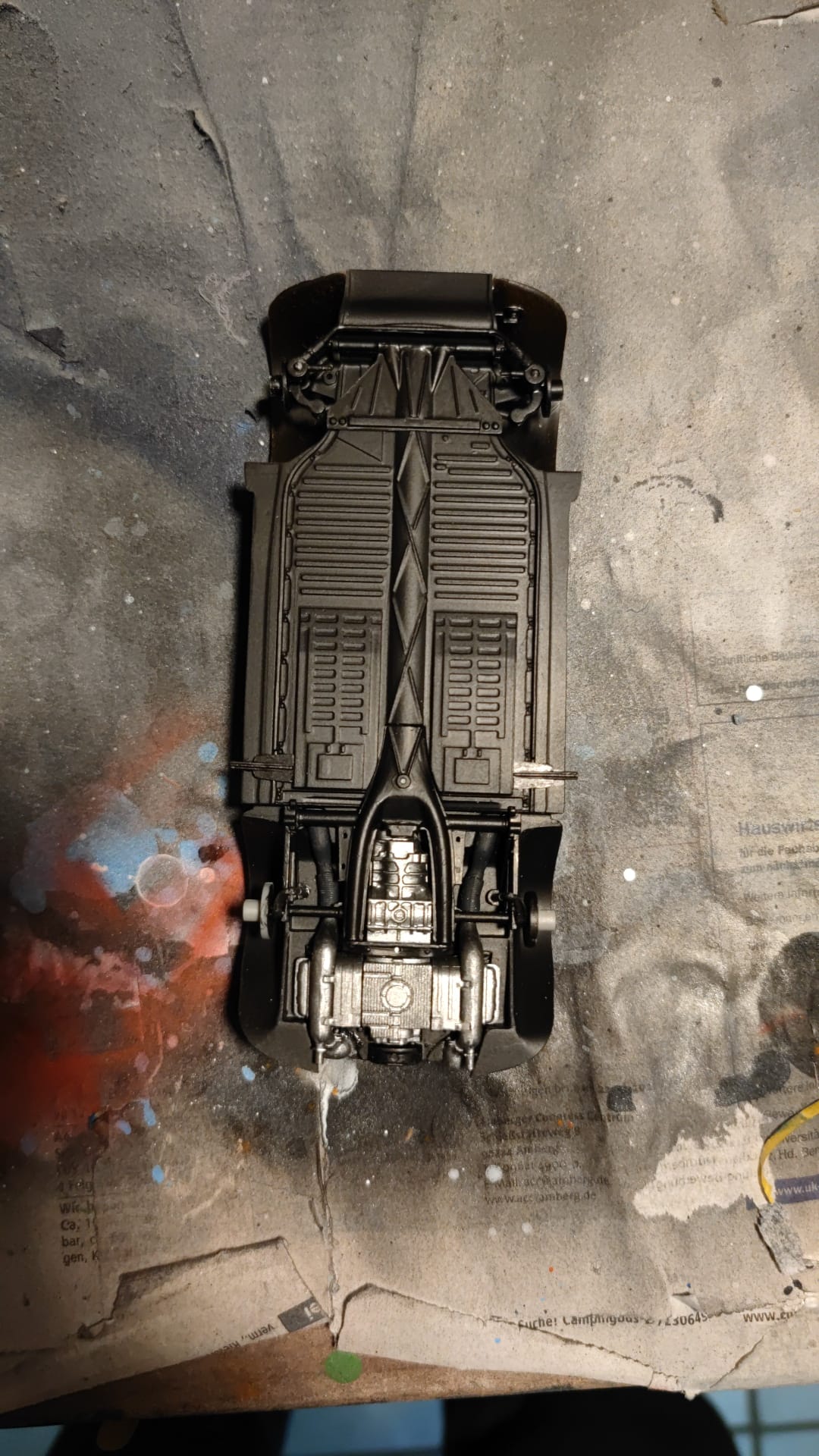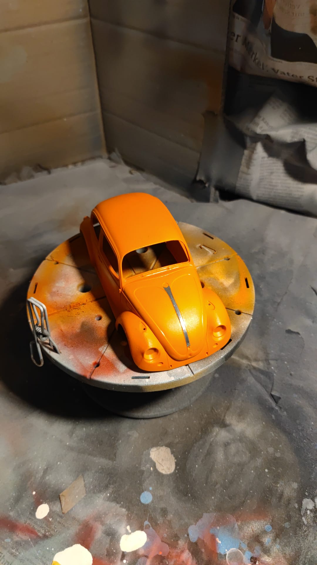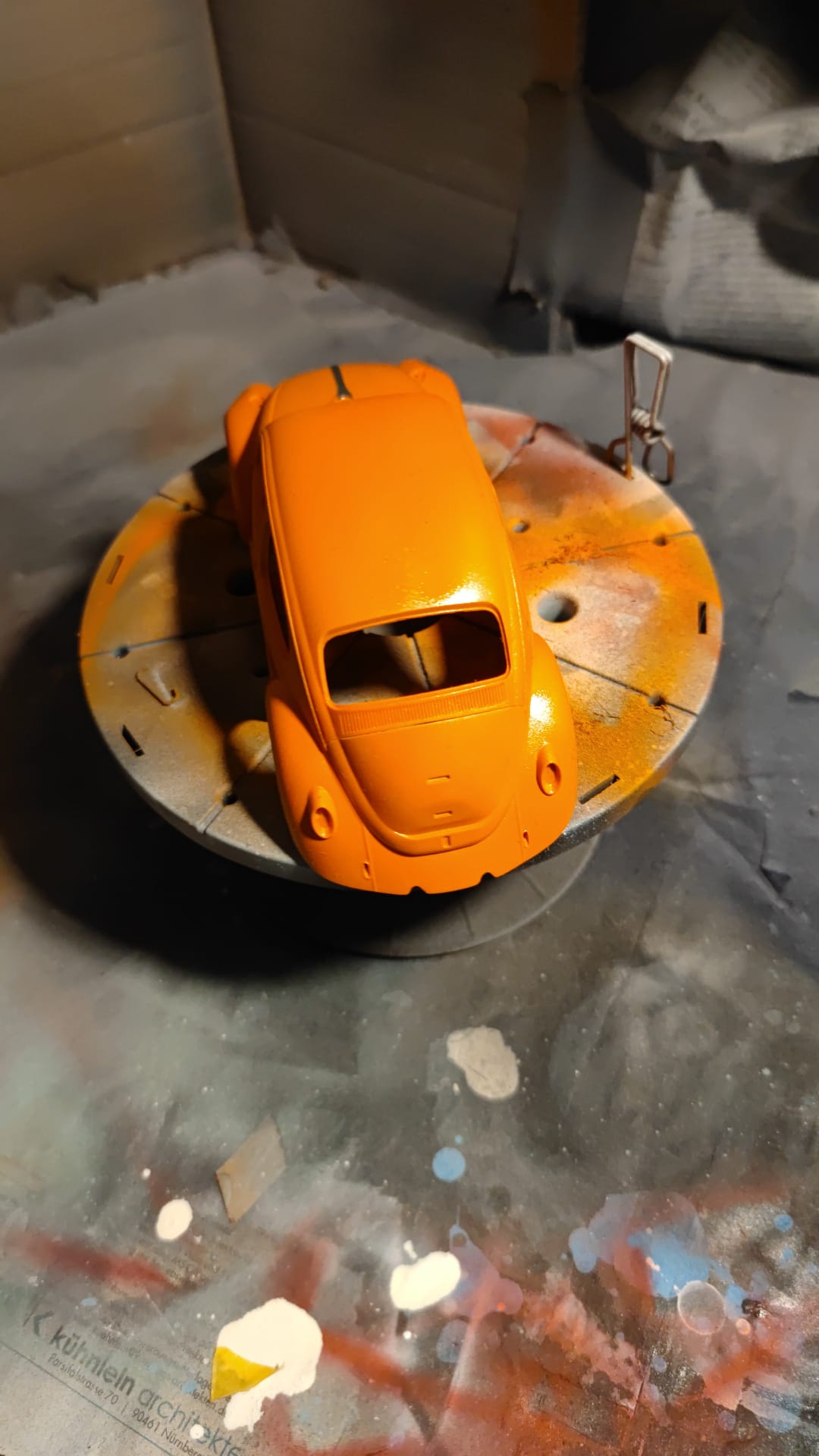 Die Karosse ist mit Revell 30 Orange lackiert worden, noch kein Klarlack drauf.