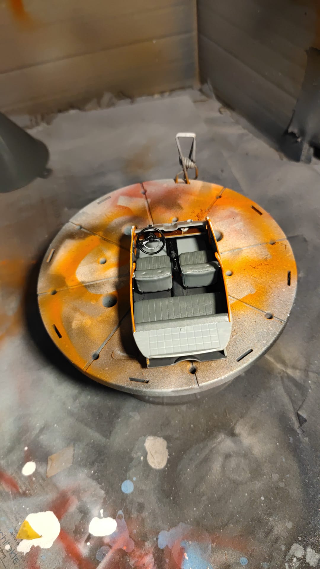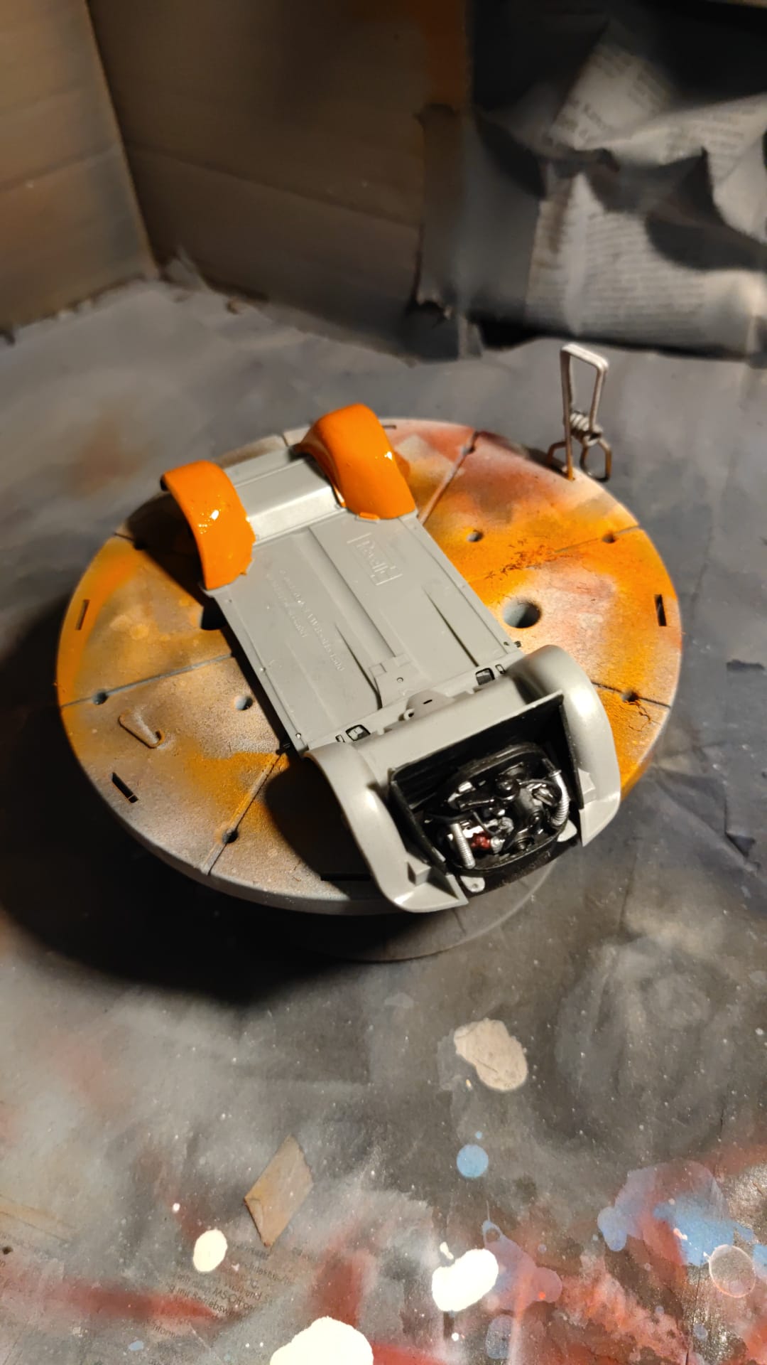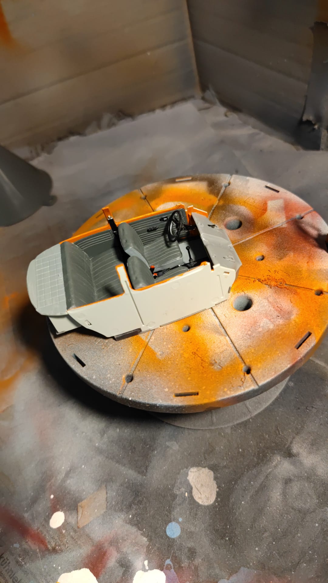 Die Karosse ist mit Revell 30 Orange lackiert worden, noch kein Klarlack drauf.