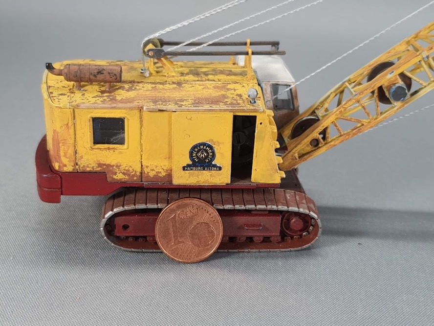 Besonders war auch der Bagger. Hier sind (eigentlich) viele Teile beweglich. Die Seile liegen auf Rollen, die durch die geöffneten Seitentüren mit einem kleinen Schraubendreher bewegt werden können.