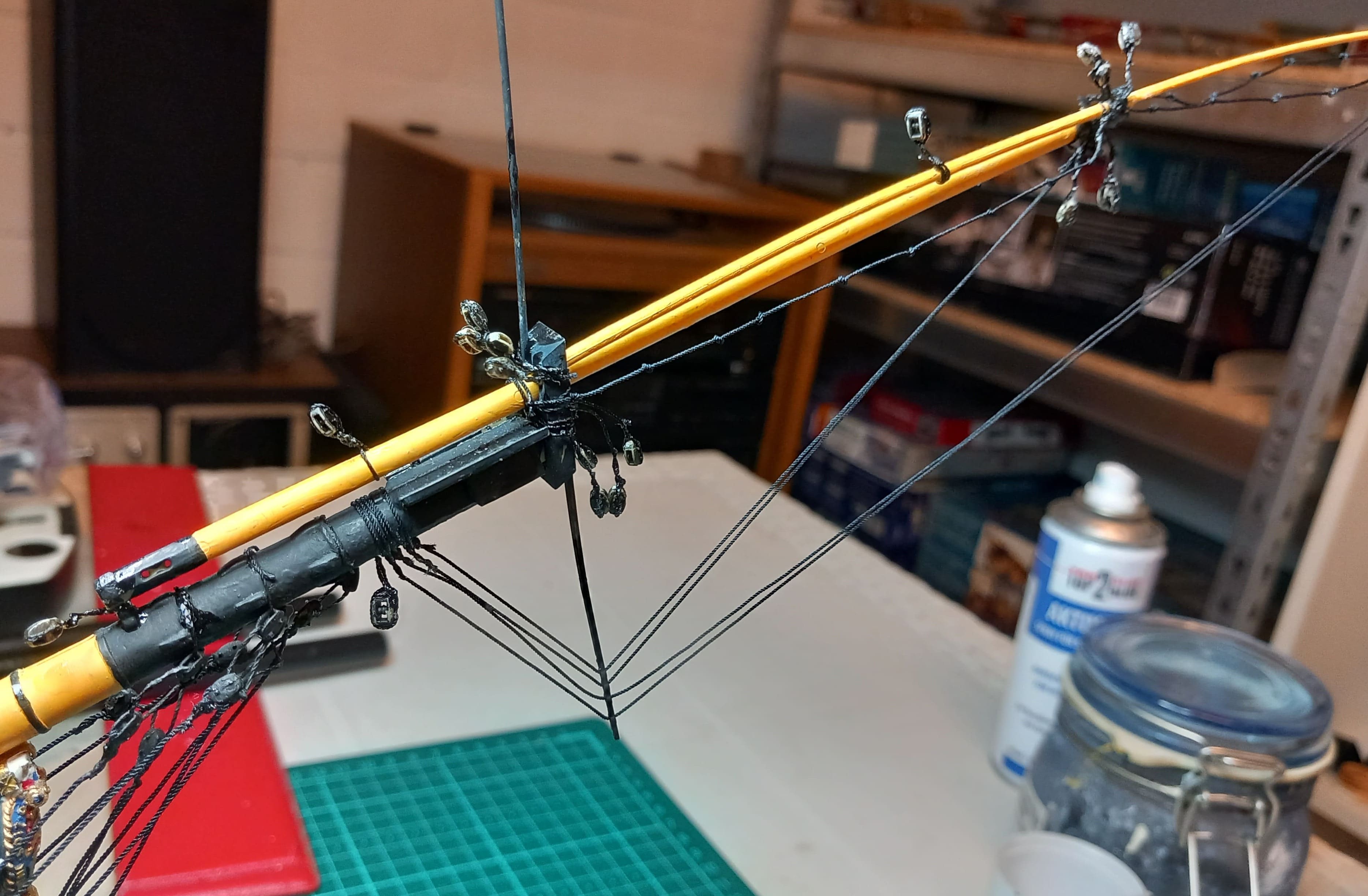 Danach geht es dann mit Bugspriet und den Masten weiter.