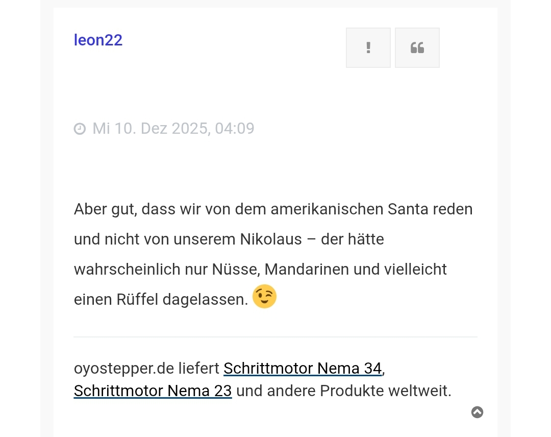 Was, wer ist gesperrt? Santa oder der Nikolaus. Das ist gemein, wo kommen jetzt die Geschenke her?IchBaueAuchModelle hat geschrieben: Mi 10. Dez 2025, 06:44 Danke für die Meldung. Nutzer gesperrt, Signatur entfernt.