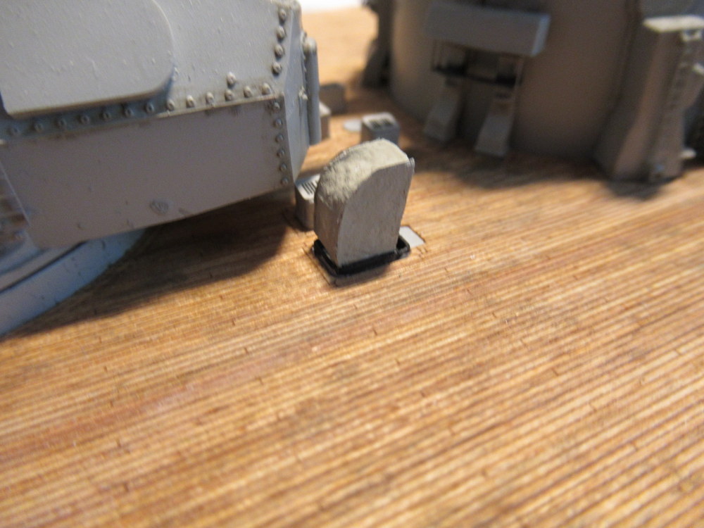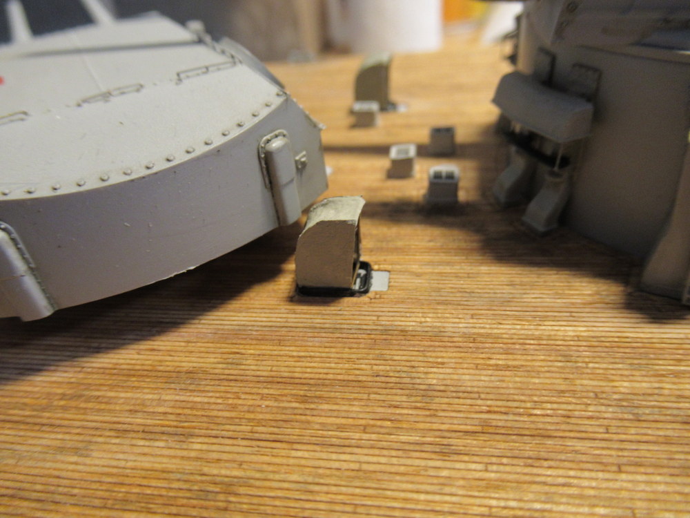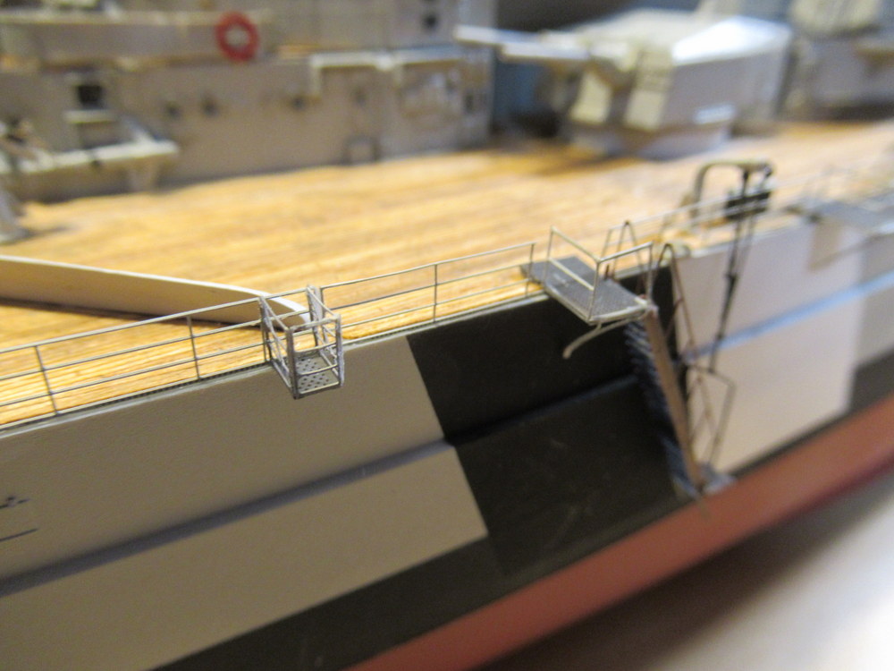 Hier sollte auf jeden Fall eine der Aussenleitern dran . Eine Zweite wurde auf dem Deck befestigt und die dritte wird gerade aufgebaut .