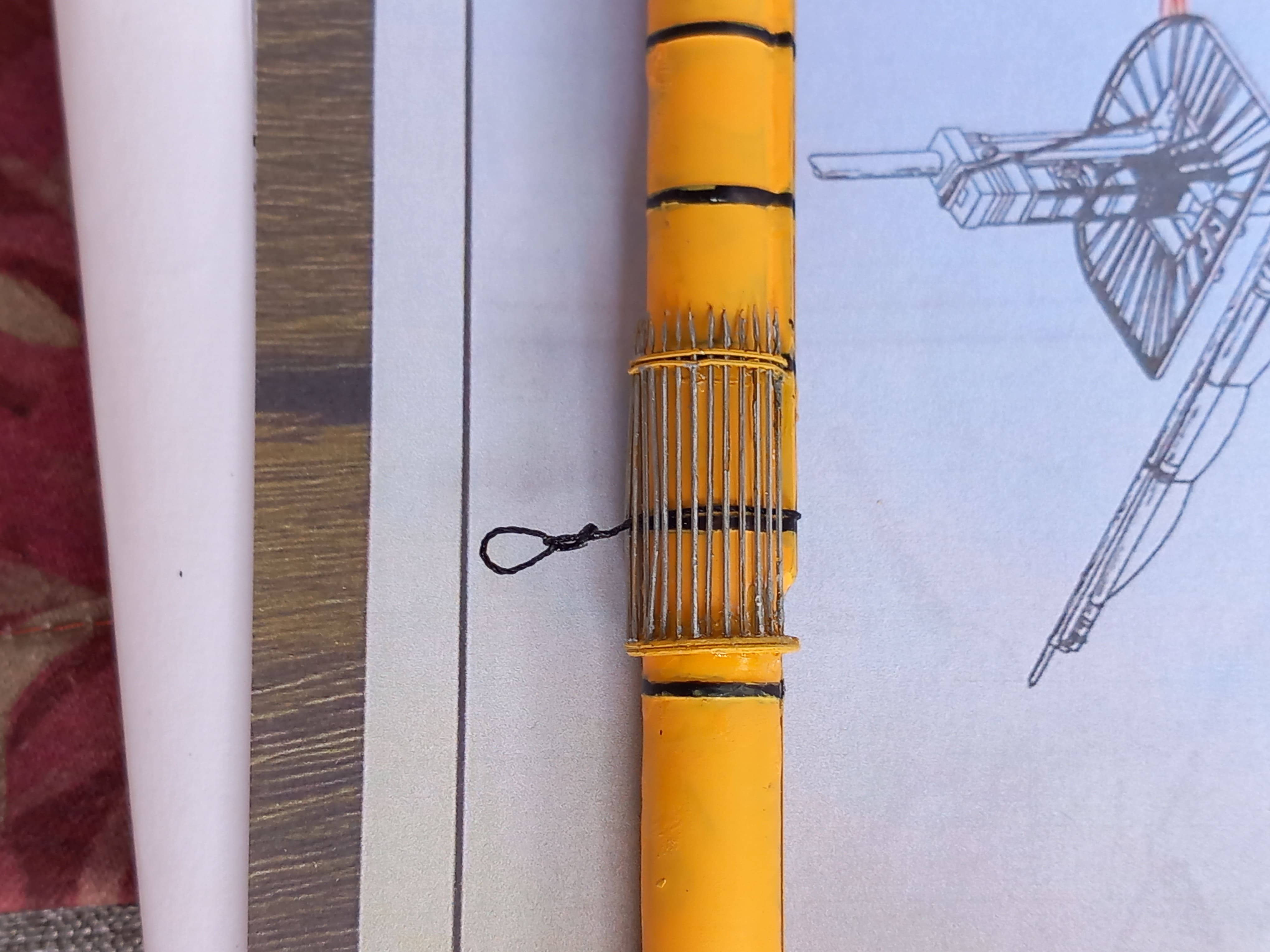 Erstmal vielen Dank für Eure Anmerkungen. Das baut mich bei diesem schweren Bausatz auf. Jetzt habe ich erstmal nachträglich die Enterspieße am Fockmast aus dem Ätzteilsortiment von Dafi angebracht.