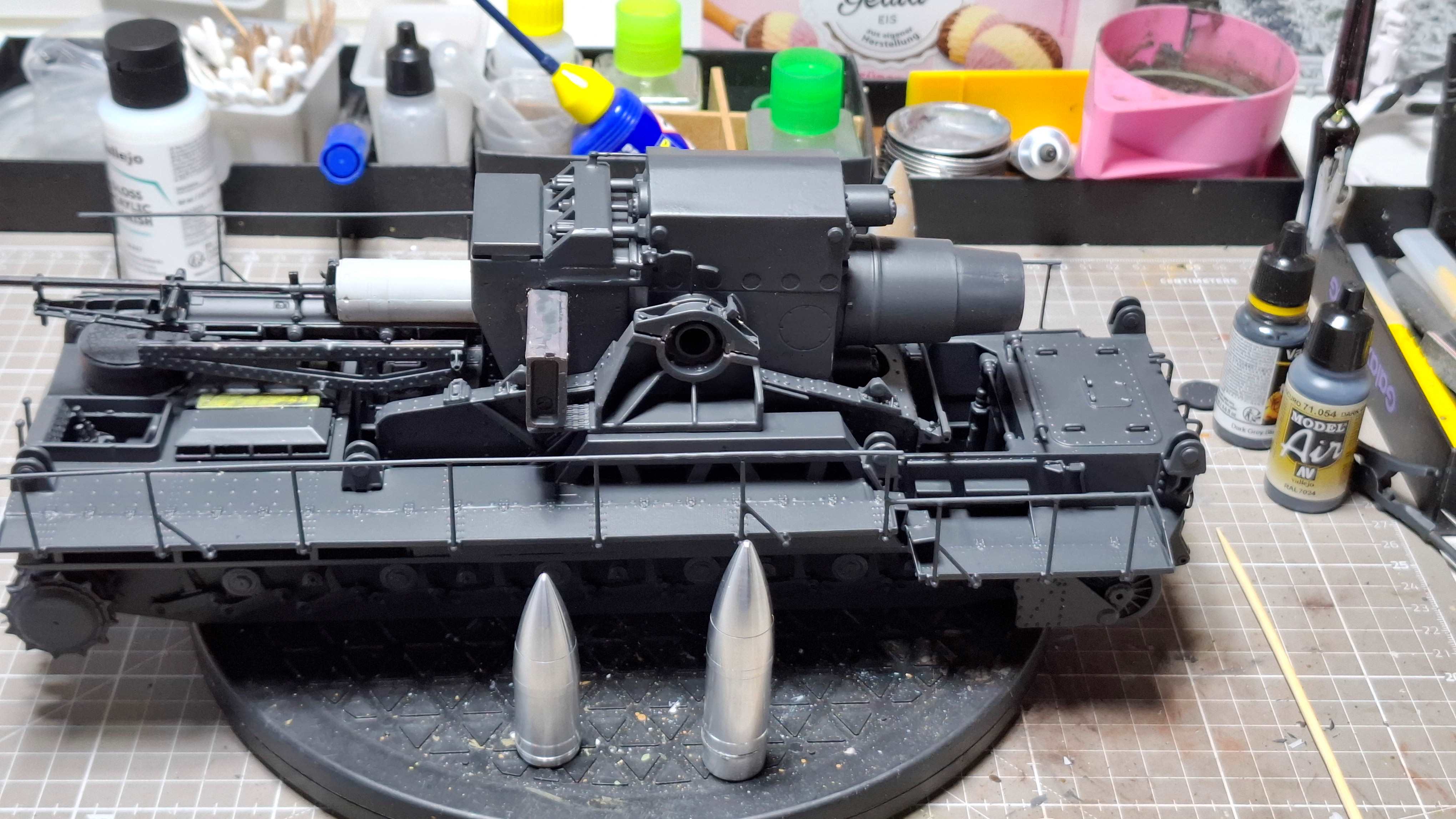 Lackiert habe ich mit Vallejo Hobby Paint Panzer Grey Spray!