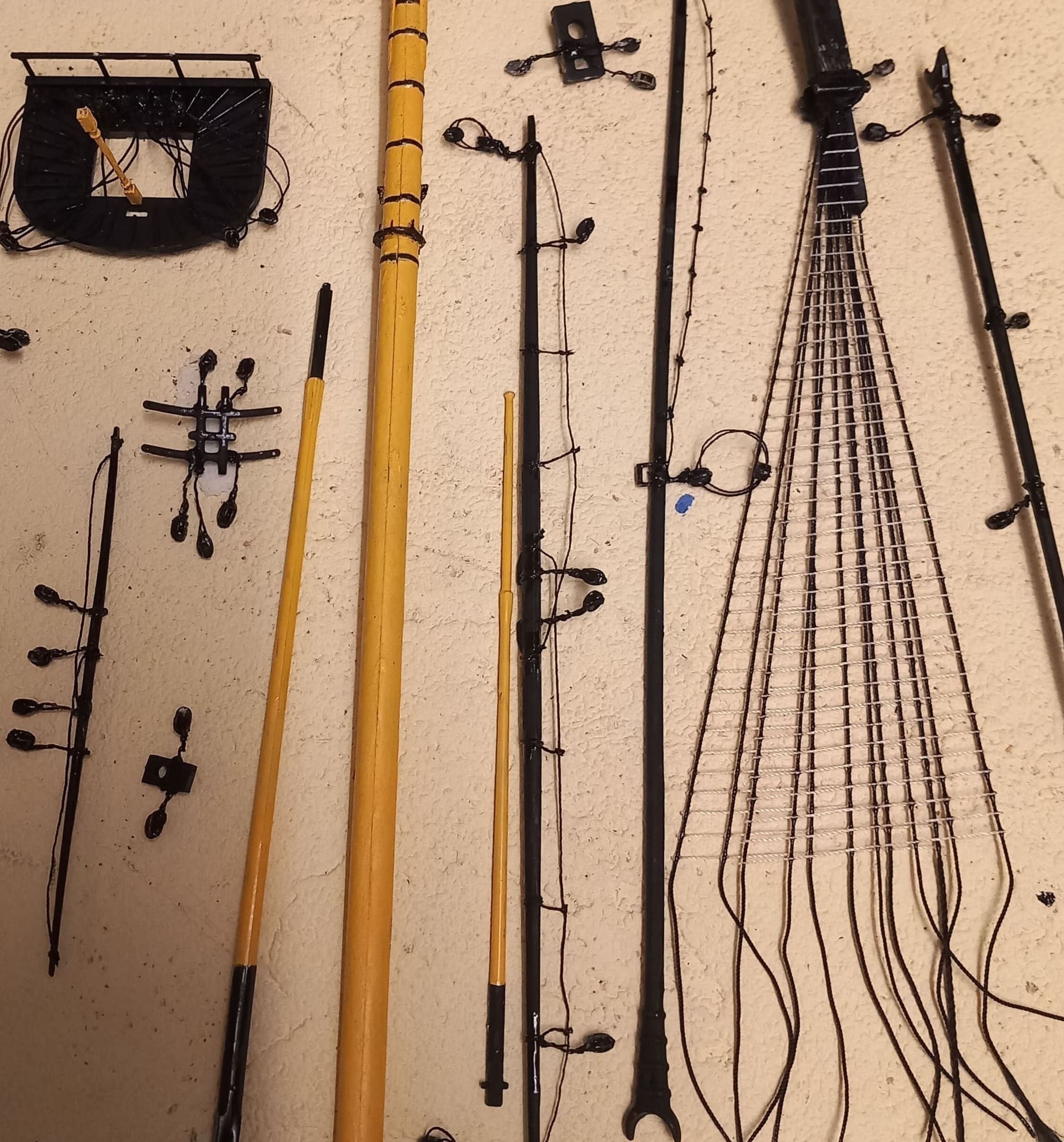 Bin jetzt wieder einen Schritt weitr gekommen. Die einzelnen Komponenten für den Besanmast sind vorbeitet.