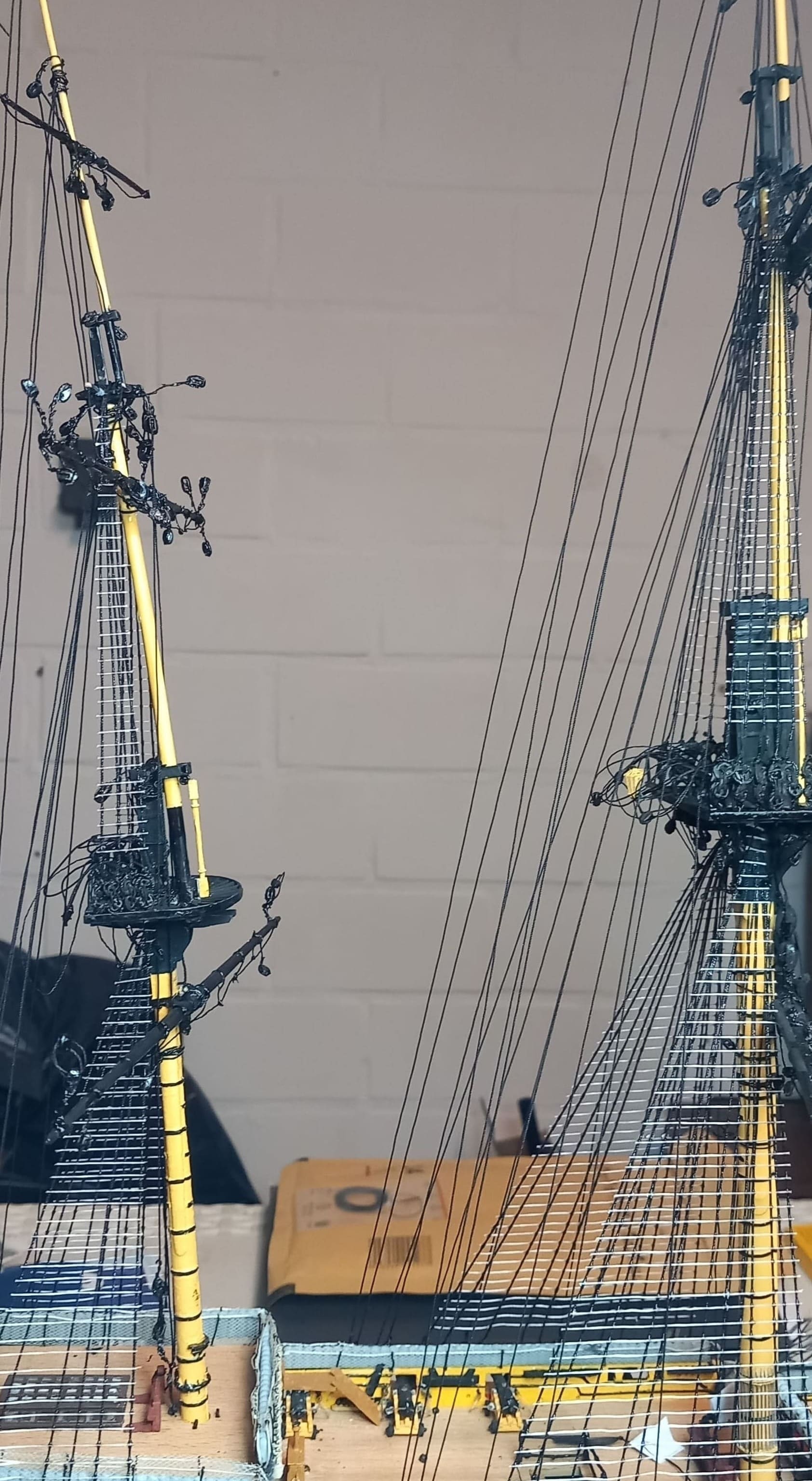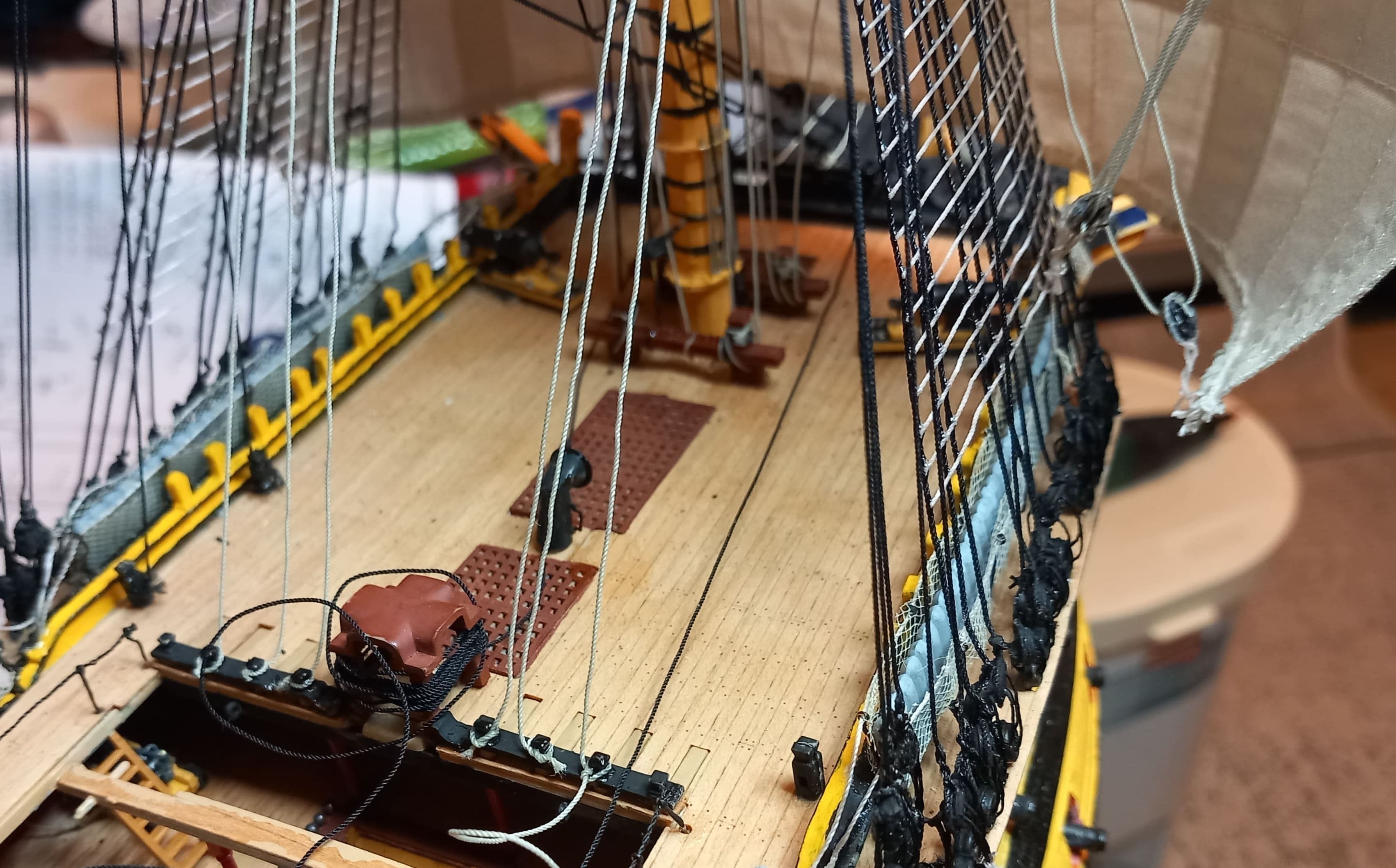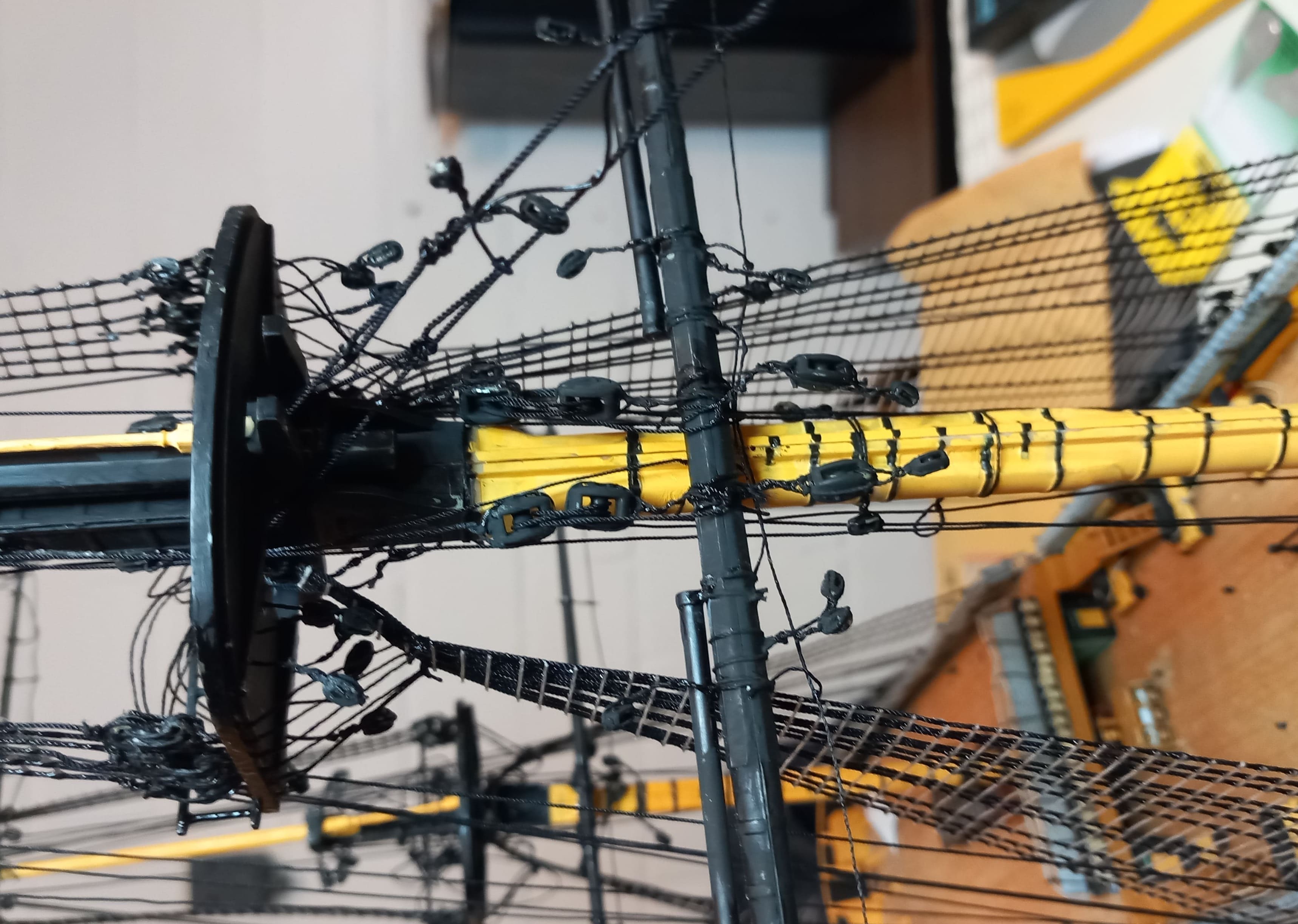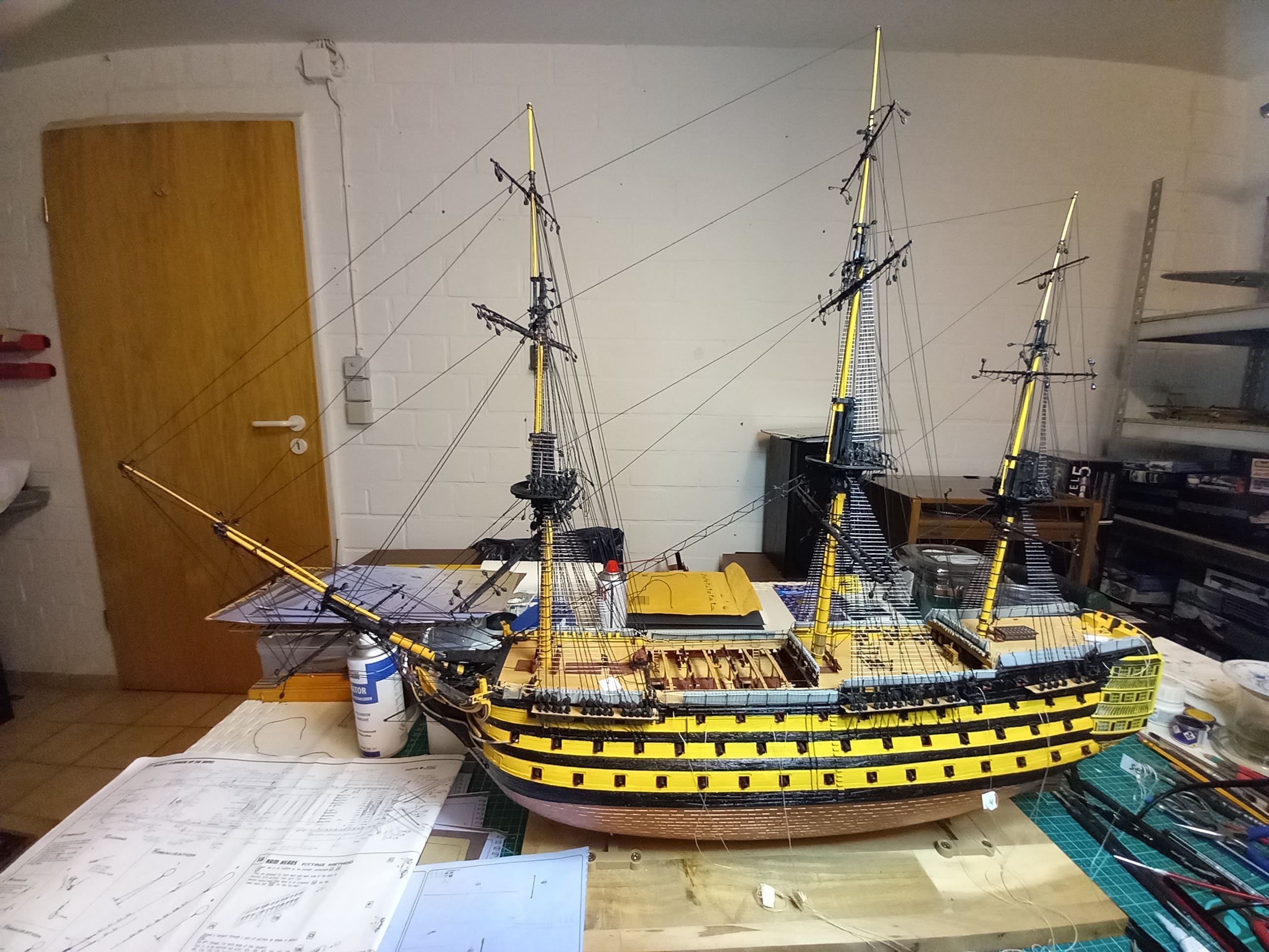 Stimmt, die Takelage hat es in sich. Aber genauso schwer ist das Suchen der Taue und deren Führung. Immer zwischen 3 Plänen hin und her suchen ist enorm zeitaufwändig und anstrengend.