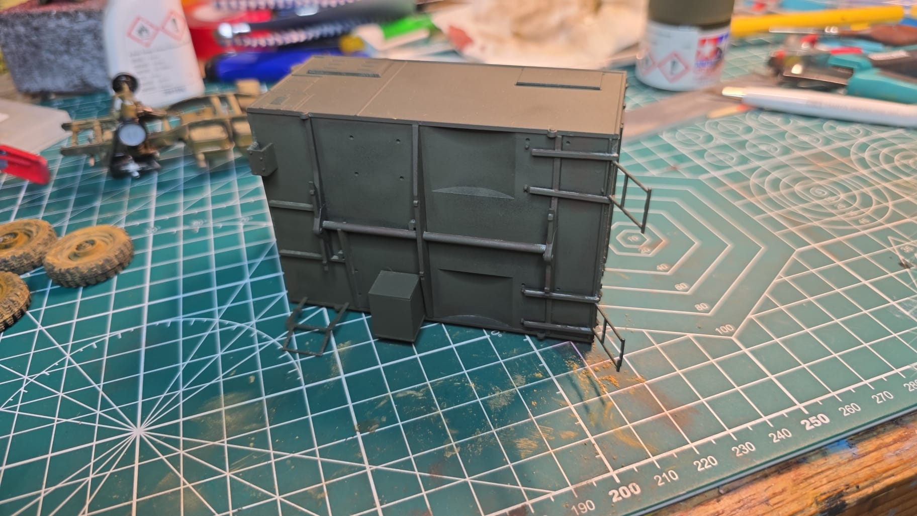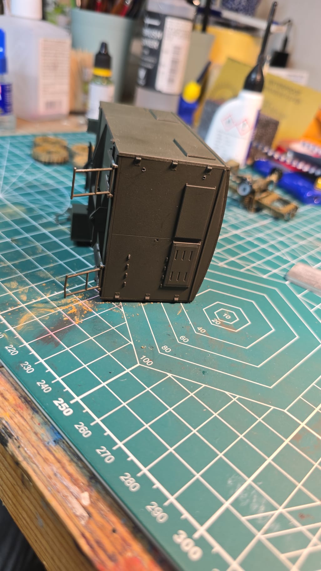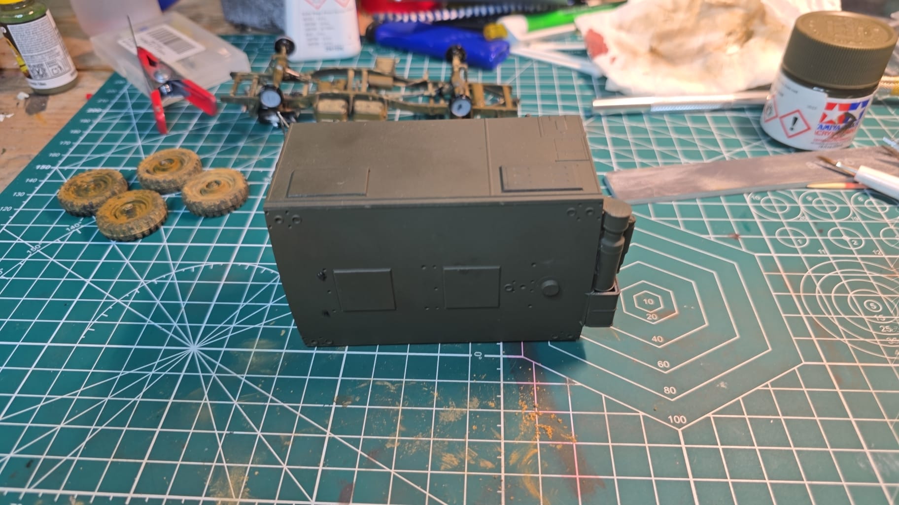 Moin, da ich noch immer keinen PE Satz für den Alfa 2300 bekommen habe, habe ich mir den Bausatz des ICM 35137 S404 Unimog mit Kofferaufbau vorgenommen. Mitten im Bau habe ich dann festgestellt, dass ich keine Bilder gemacht habe. Darum kein Baubericht, sondern stelle ihn hier rein. Es sei mir verziehen, aber der Bau hat mich mitunter ganz tief in meine Erinnerungen reingezogen, so dass ich an Bilder machen einfach nicht gedacht habe. Leider fällt mir das Nummernschild nicht mehr ein. Ich hatte ja zusätzlich noch den großen MAN 630 Funkkoffer. Der hatte Y 405 227.