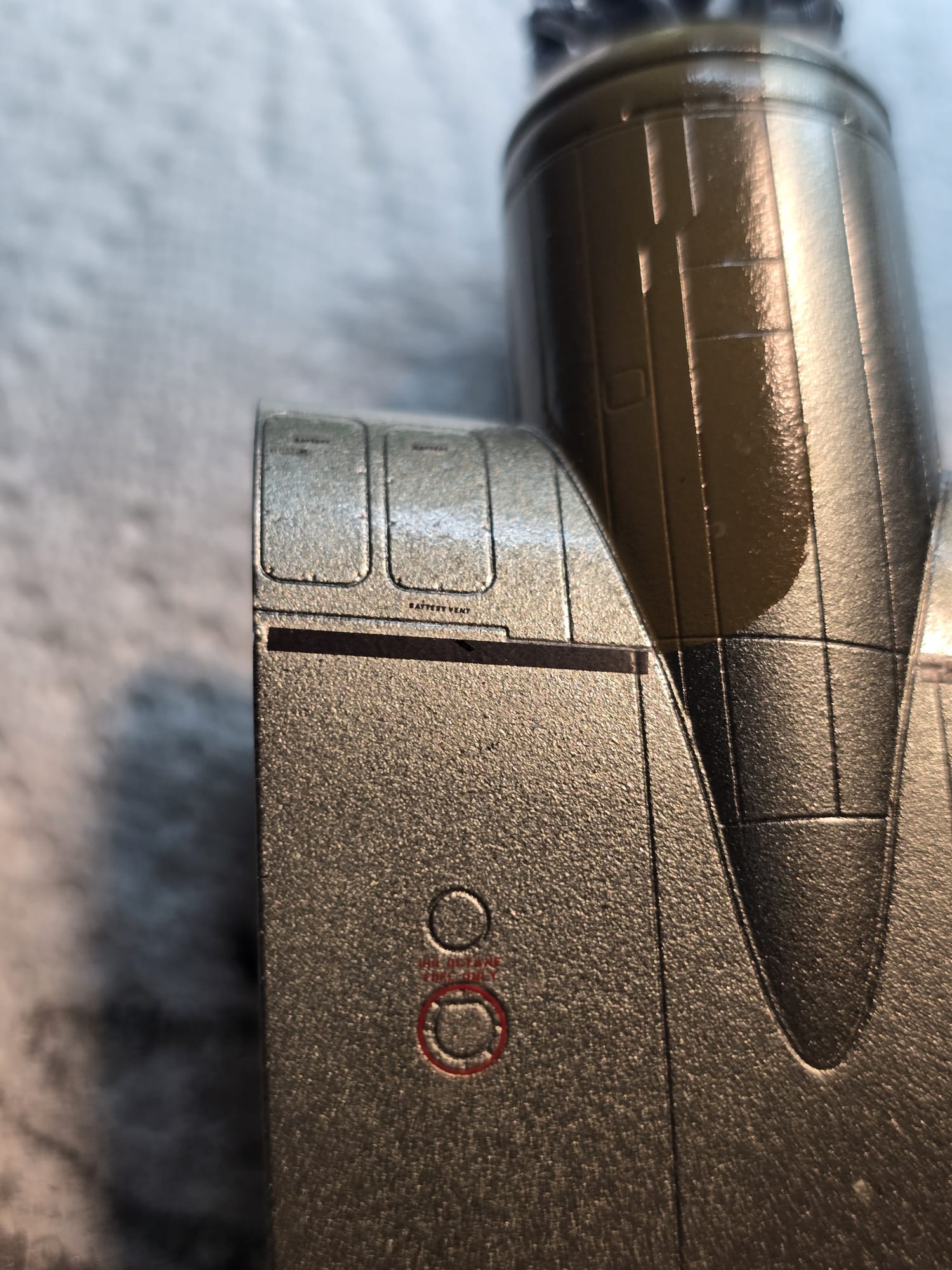 Hier sollen Decals die Lichtleiter darstellen, nachdem es im Cockpit schon "Plastikplanen" waren, habe ich vor, das zu lackieren...