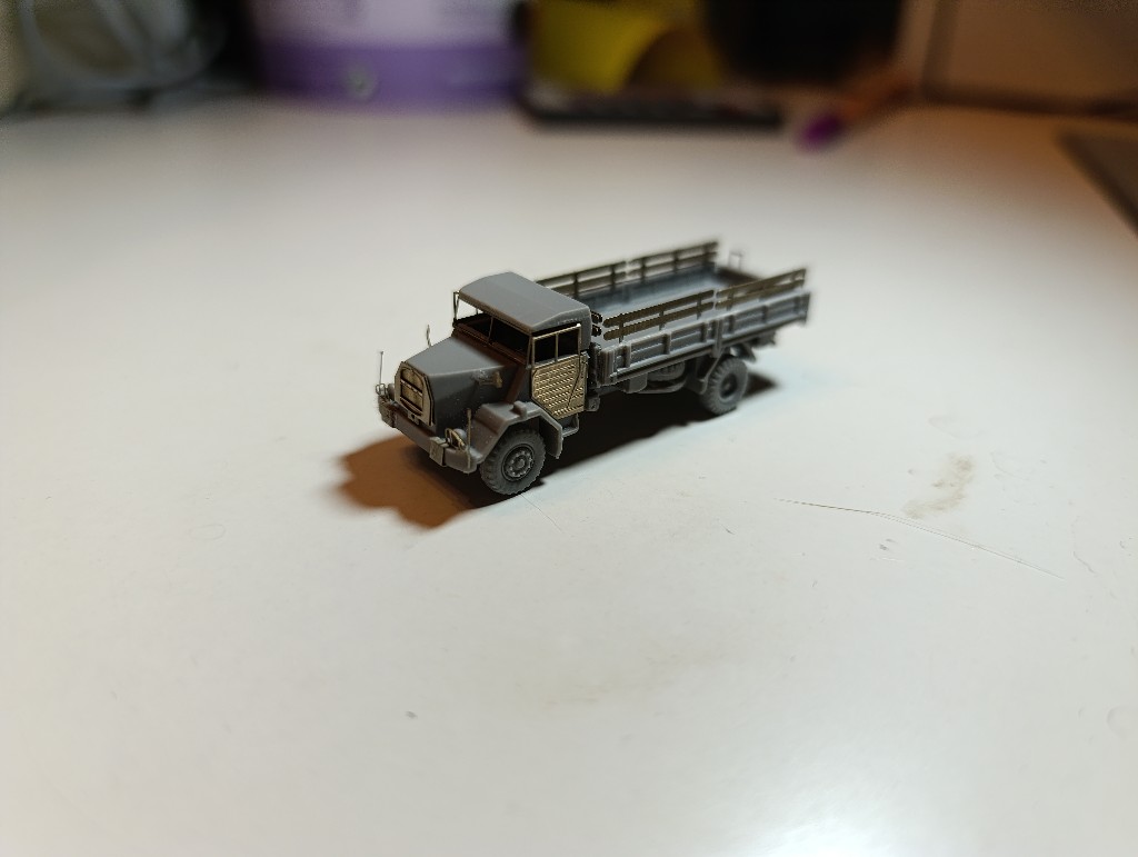 Mein Plan, wenigstens das Landungsschiff noch vor meinem Urlaub fertig zu bekommen, könnte sehr sehr knapp werden. Trotzdem habe ich immerhin schon Mal die Fahrzeuge weitgehend fertig gestellt, bis auf die MANs.