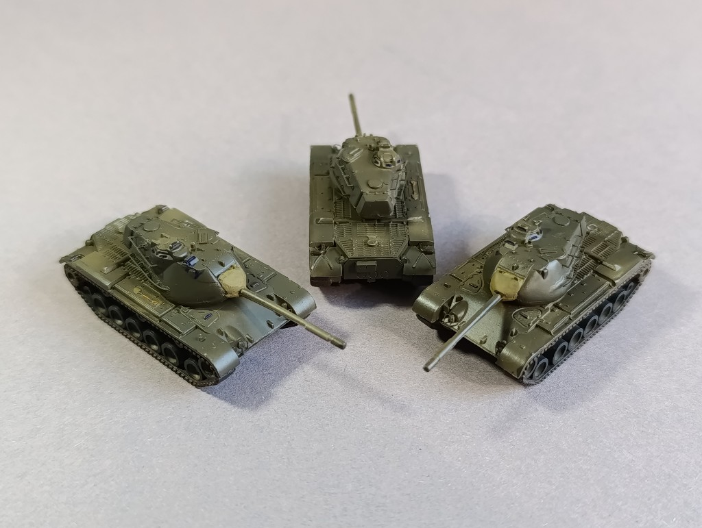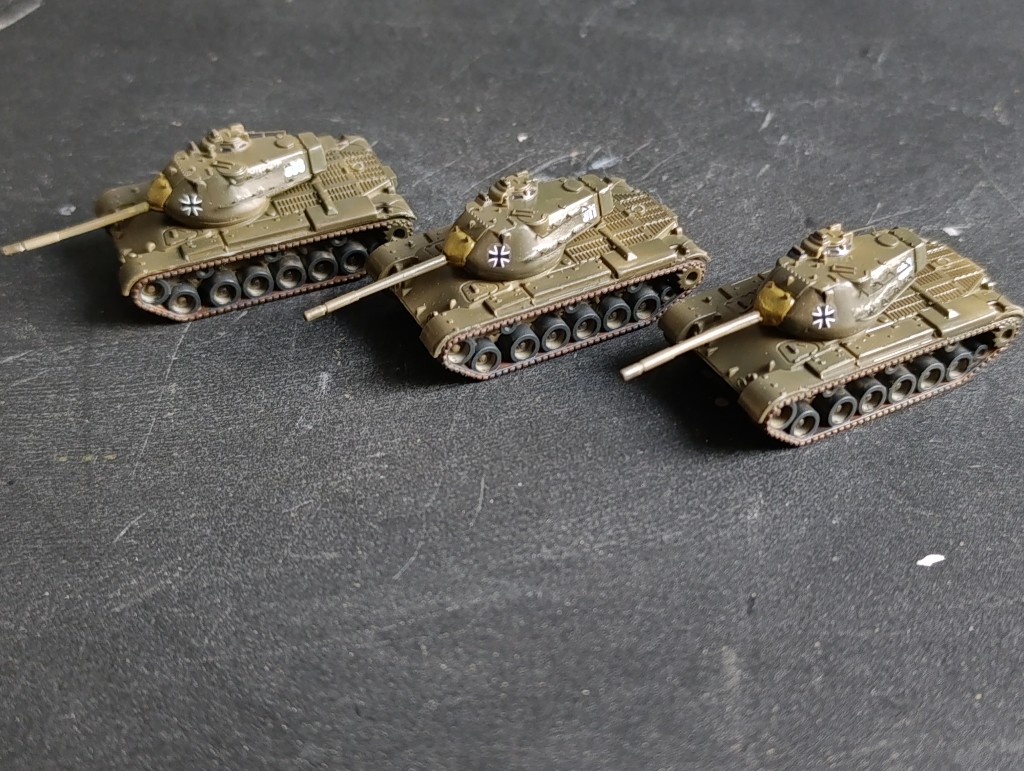 Zunächst die Pattons. Jetzt mit Farbe sehen sie gleich richtig gut aus. Ich denke mit den Decals und einer dezenten Alterung könnte diese dann auch noch richtig stark werden.