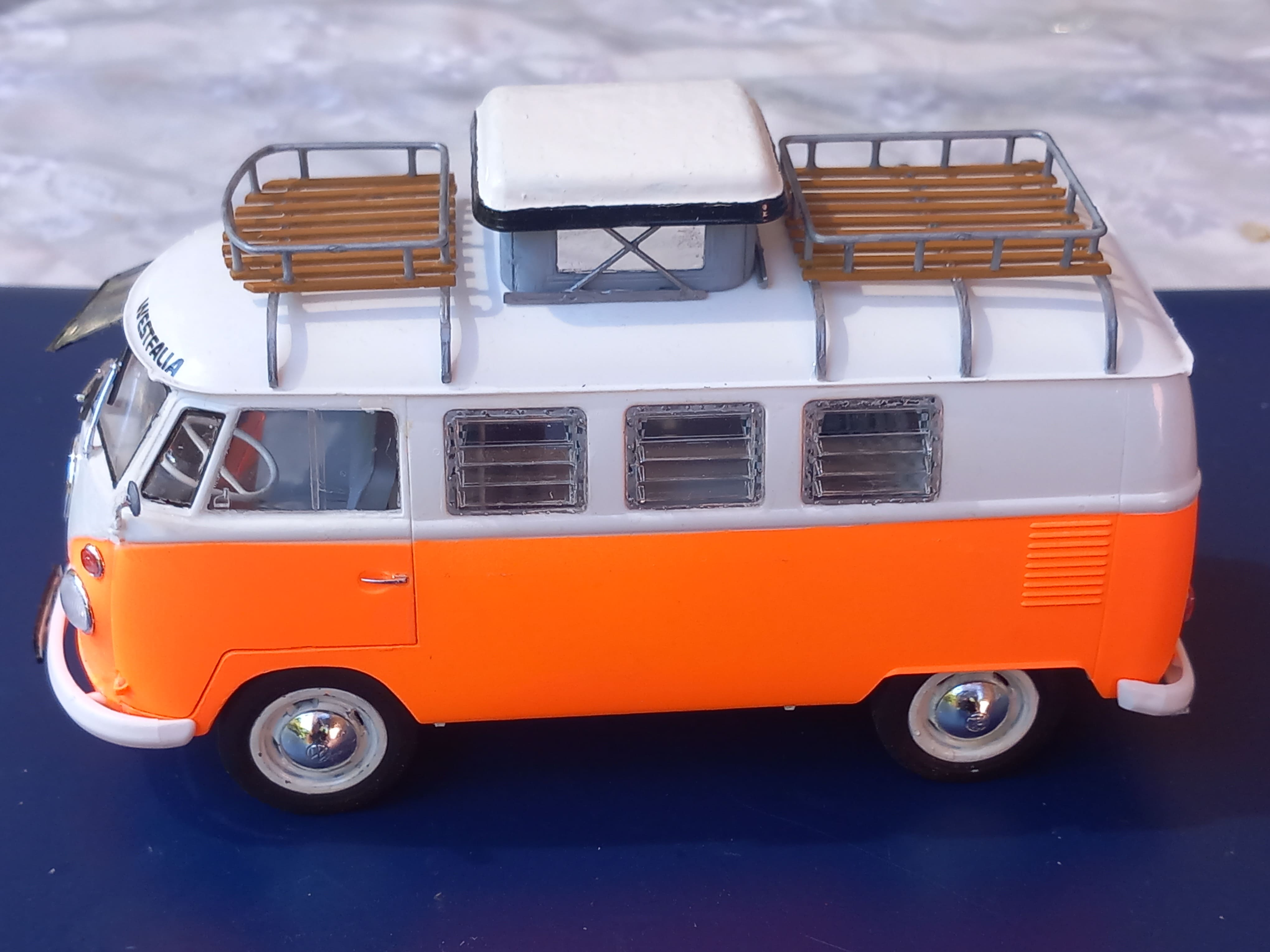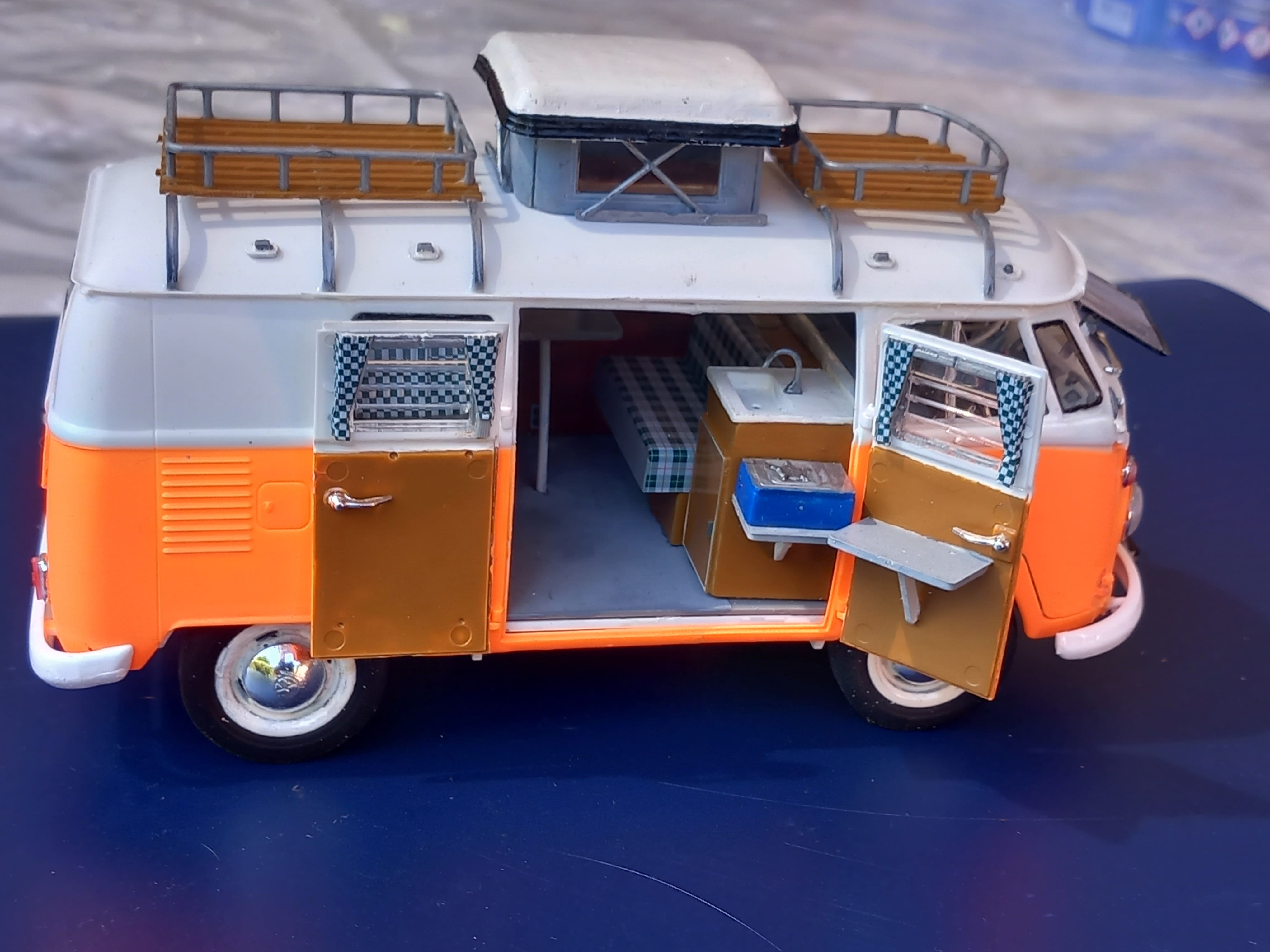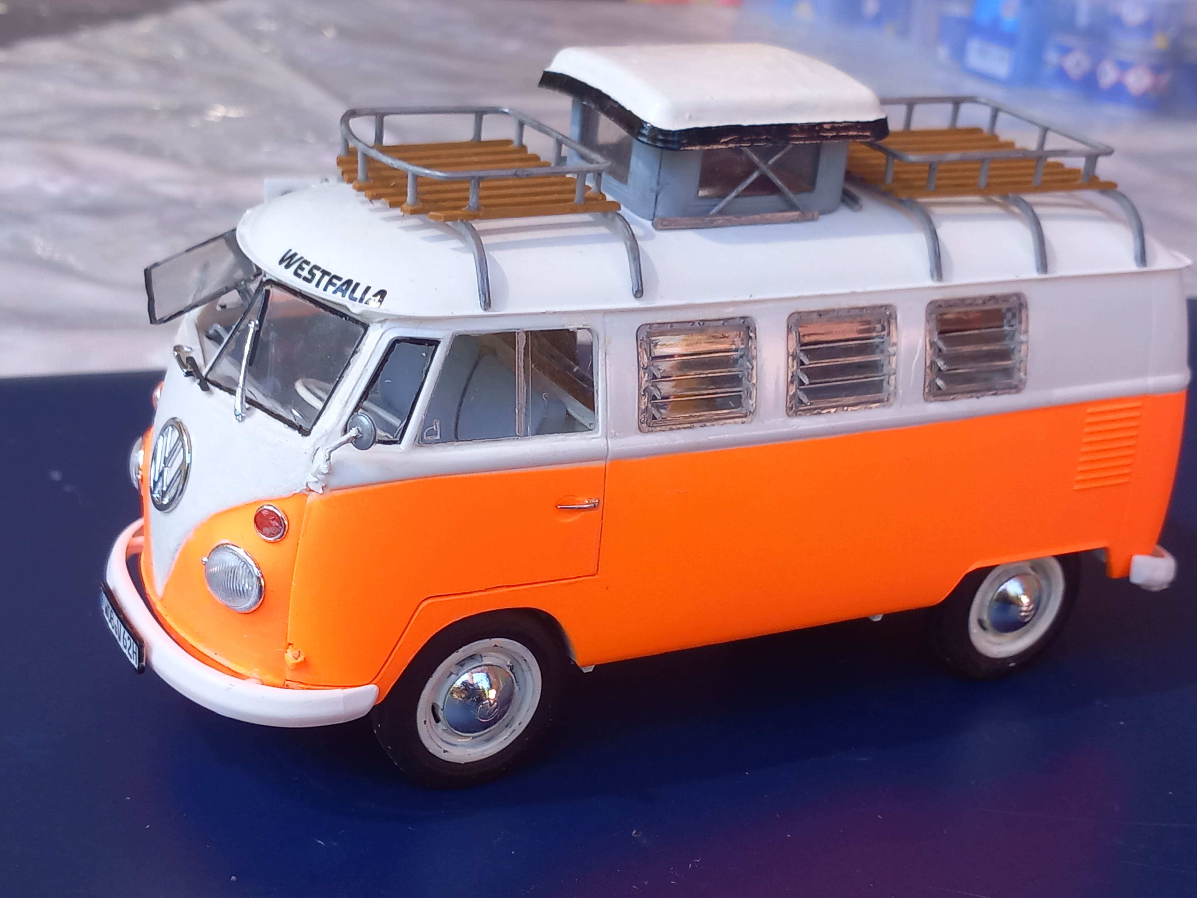 Die letzten Arbeiten am Camper sind gemacht. Hier ein paar abschließende Bilder. Der Bau hat mir viel Spaß gemacht. Die Passgenauigkeit war gut. Größere Probleme hatte ich nur bei den Vordertüren. Ein schönes Modell, das bei mir einen guten Platz bekommt. Gruß Ingo