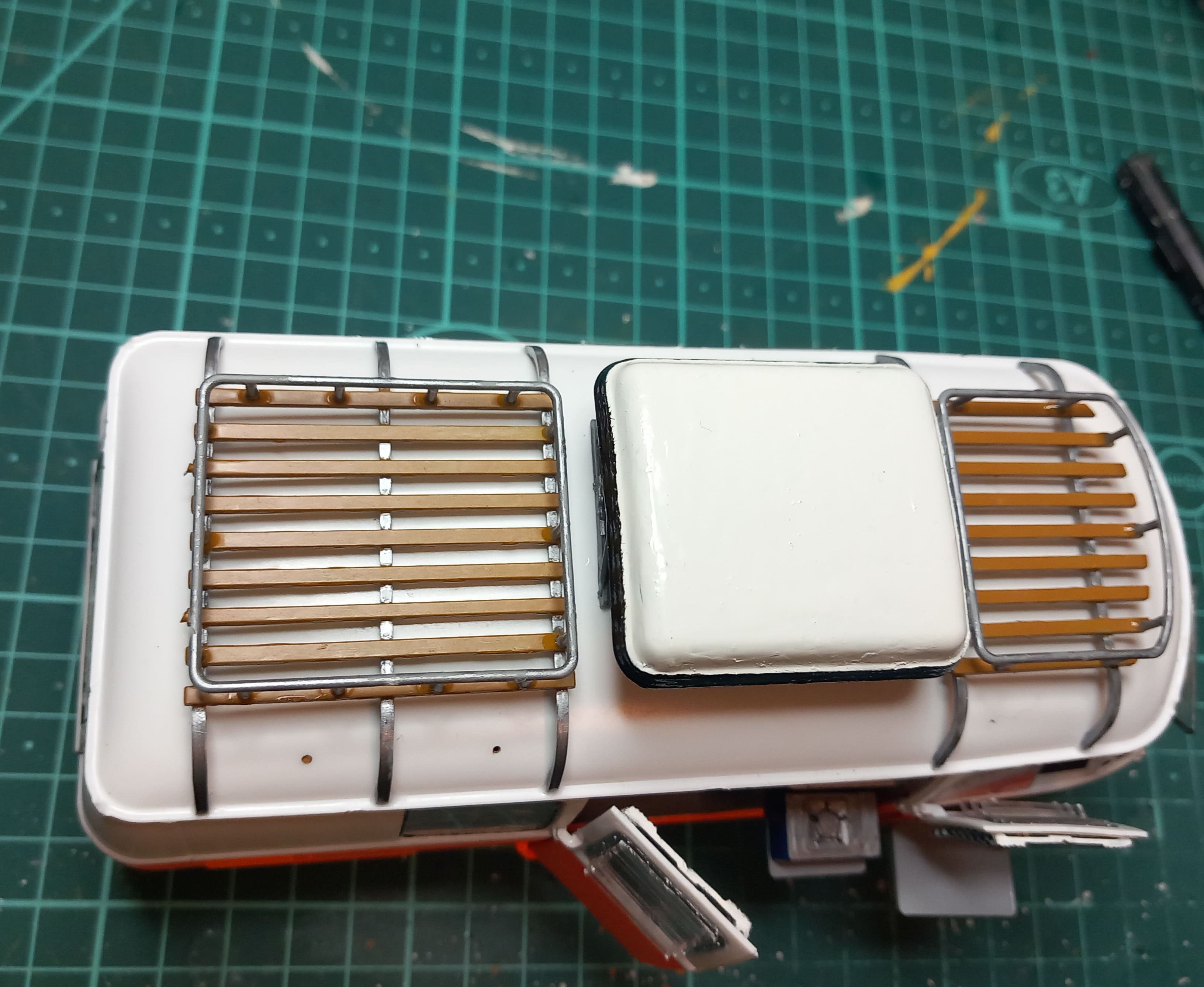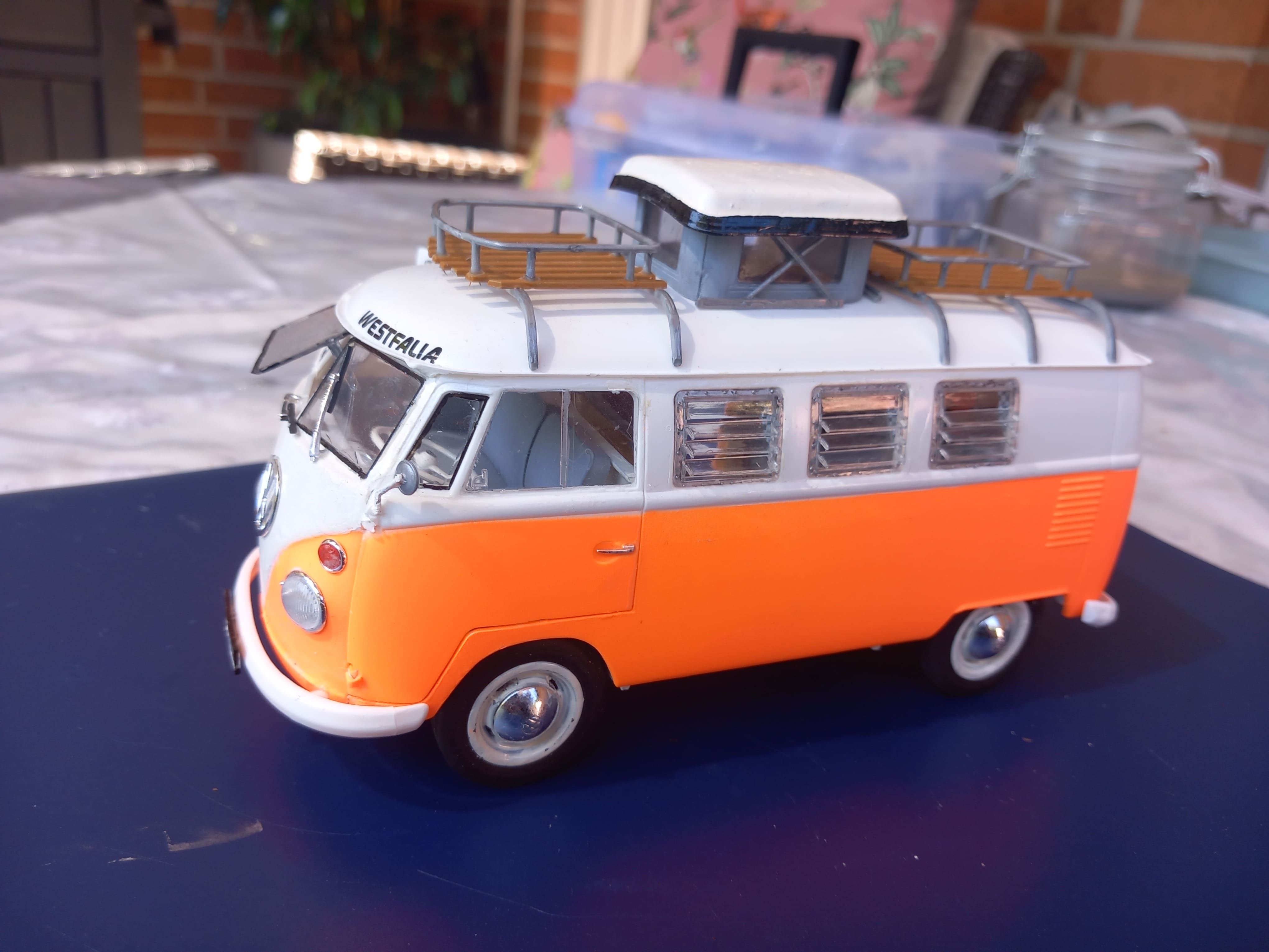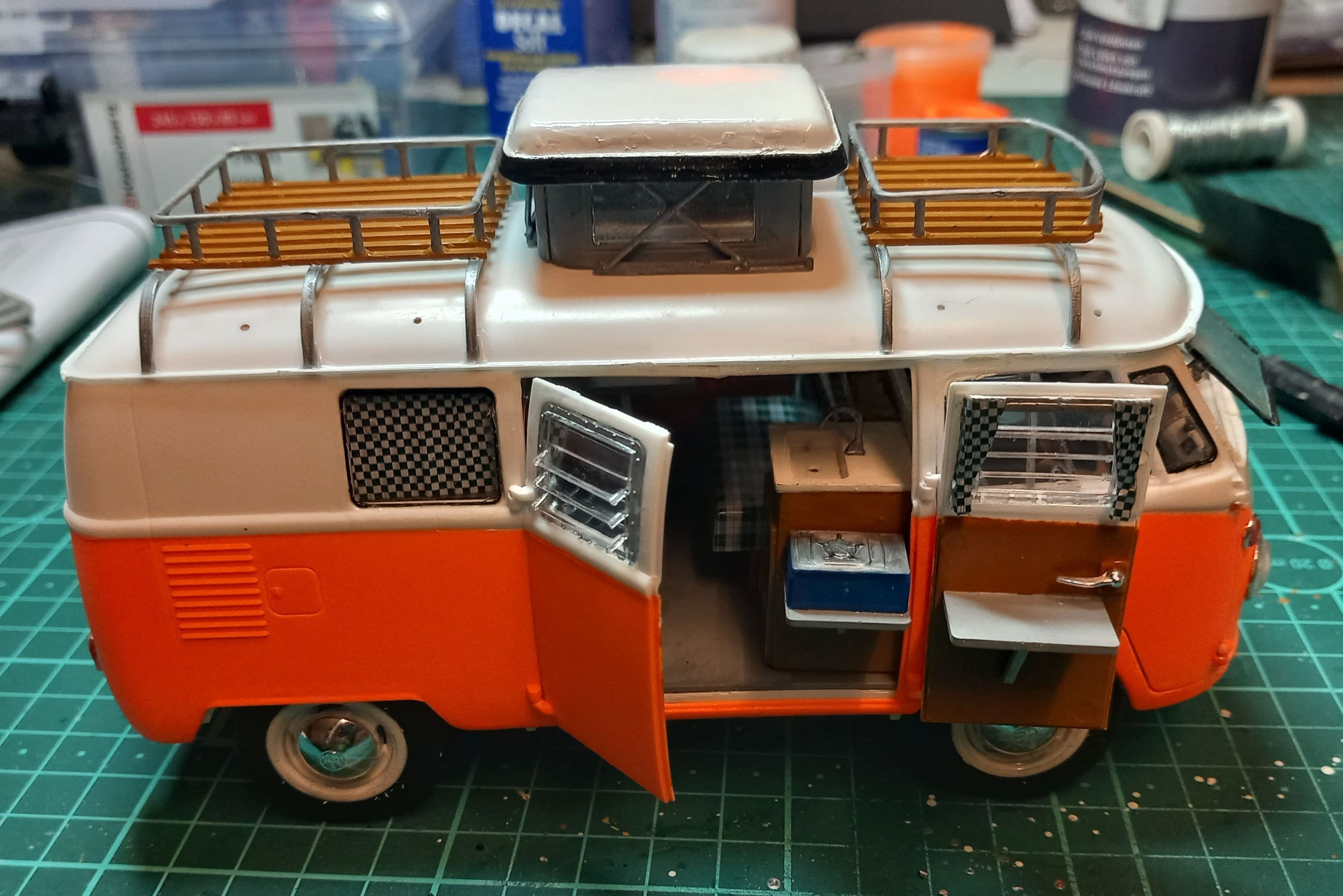 Die letzten Arbeiten am Camper sind gemacht. Hier ein paar abschließende Bilder. Der Bau hat mir viel Spaß gemacht. Die Passgenauigkeit war gut. Größere Probleme hatte ich nur bei den Vordertüren. Ein schönes Modell, das bei mir einen guten Platz bekommt. Gruß Ingo