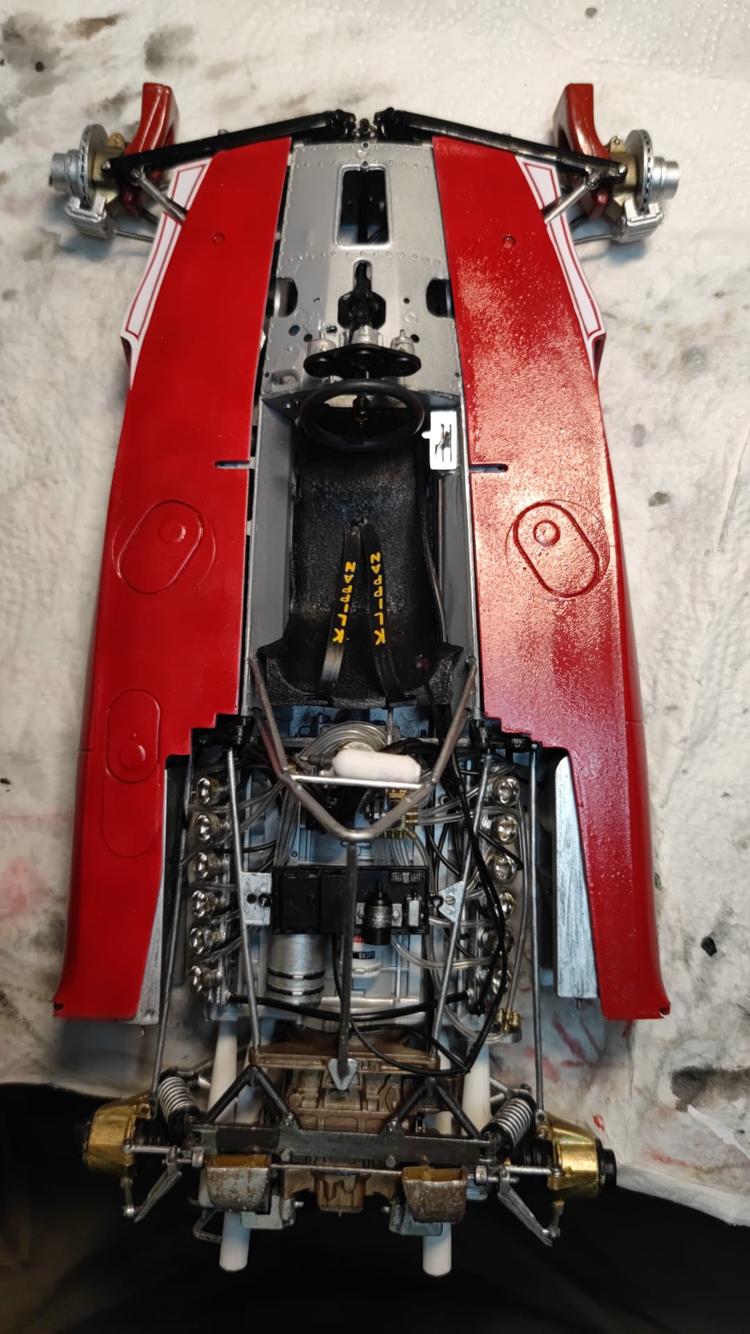 Ich gehe davon aus, dass der Unterbau, also Überrollbügel ect. Dafür verantwortlich ist. Der ganze Bausatz ist im Grunde Schrott, einfach nur schlecht. Ist jetzt halt so und ich werde mich später mit dem Tamiya Bausatz beschäftigen und ich hoffe, dass dieser mich glücklicher macht.