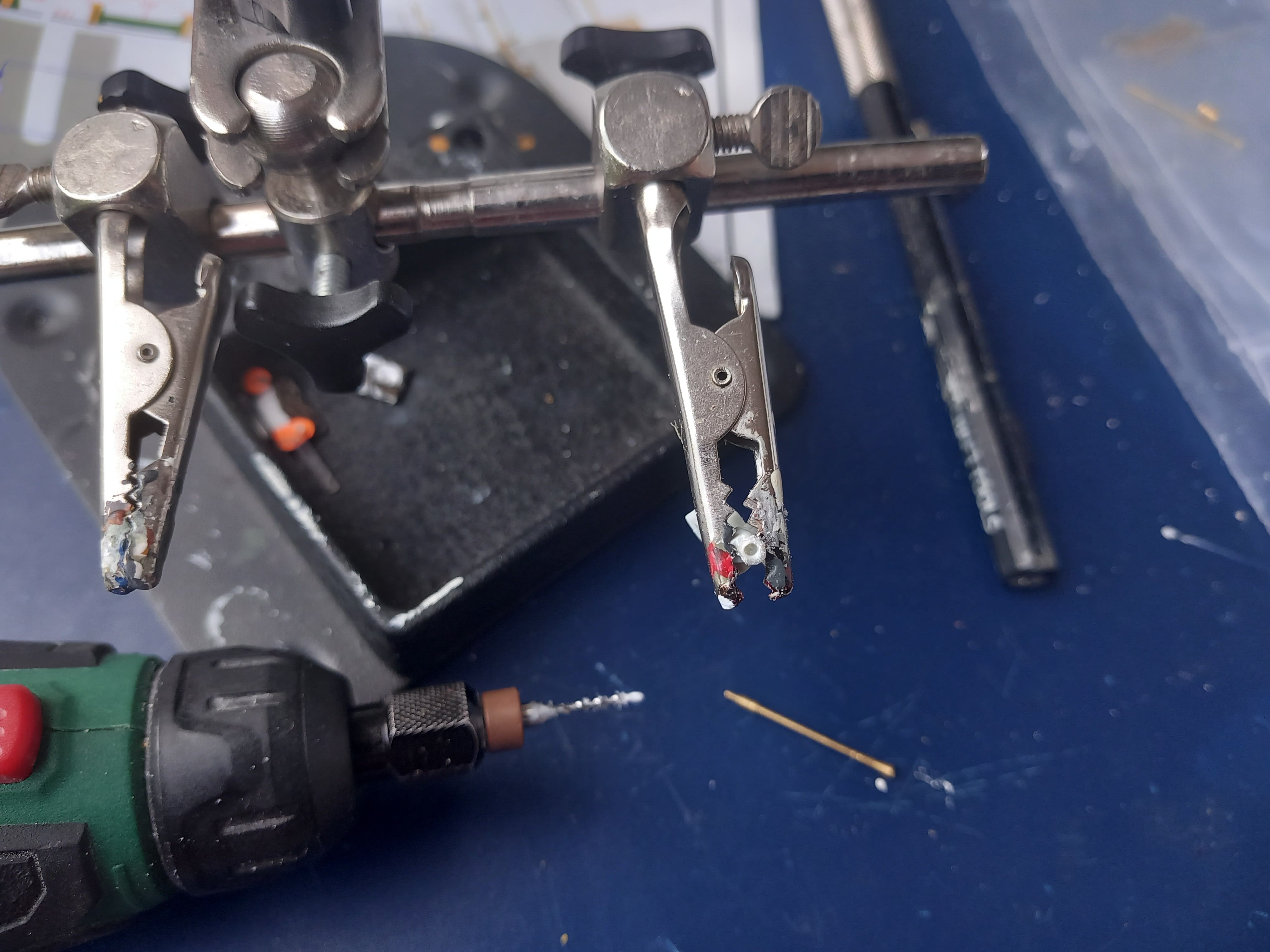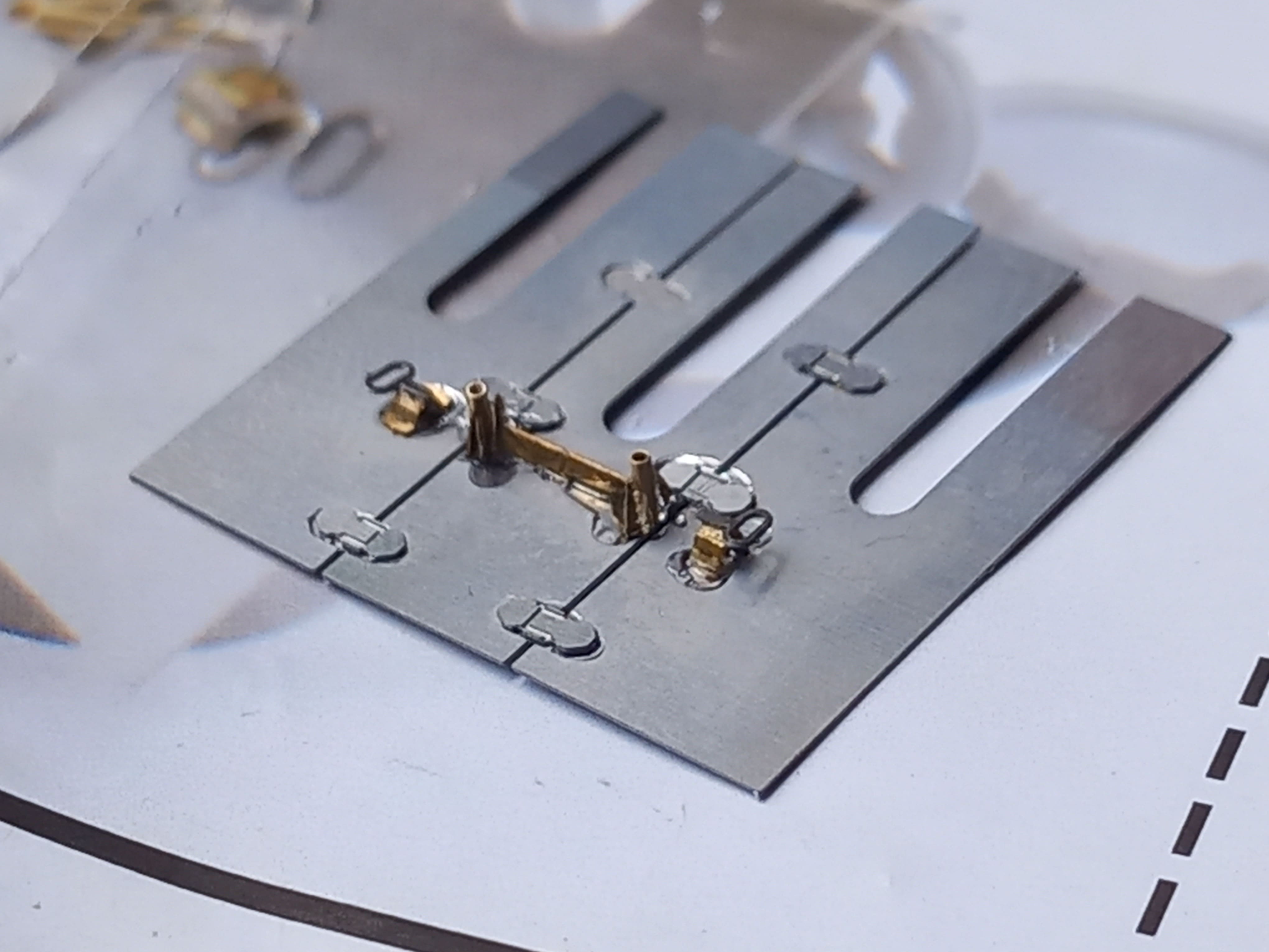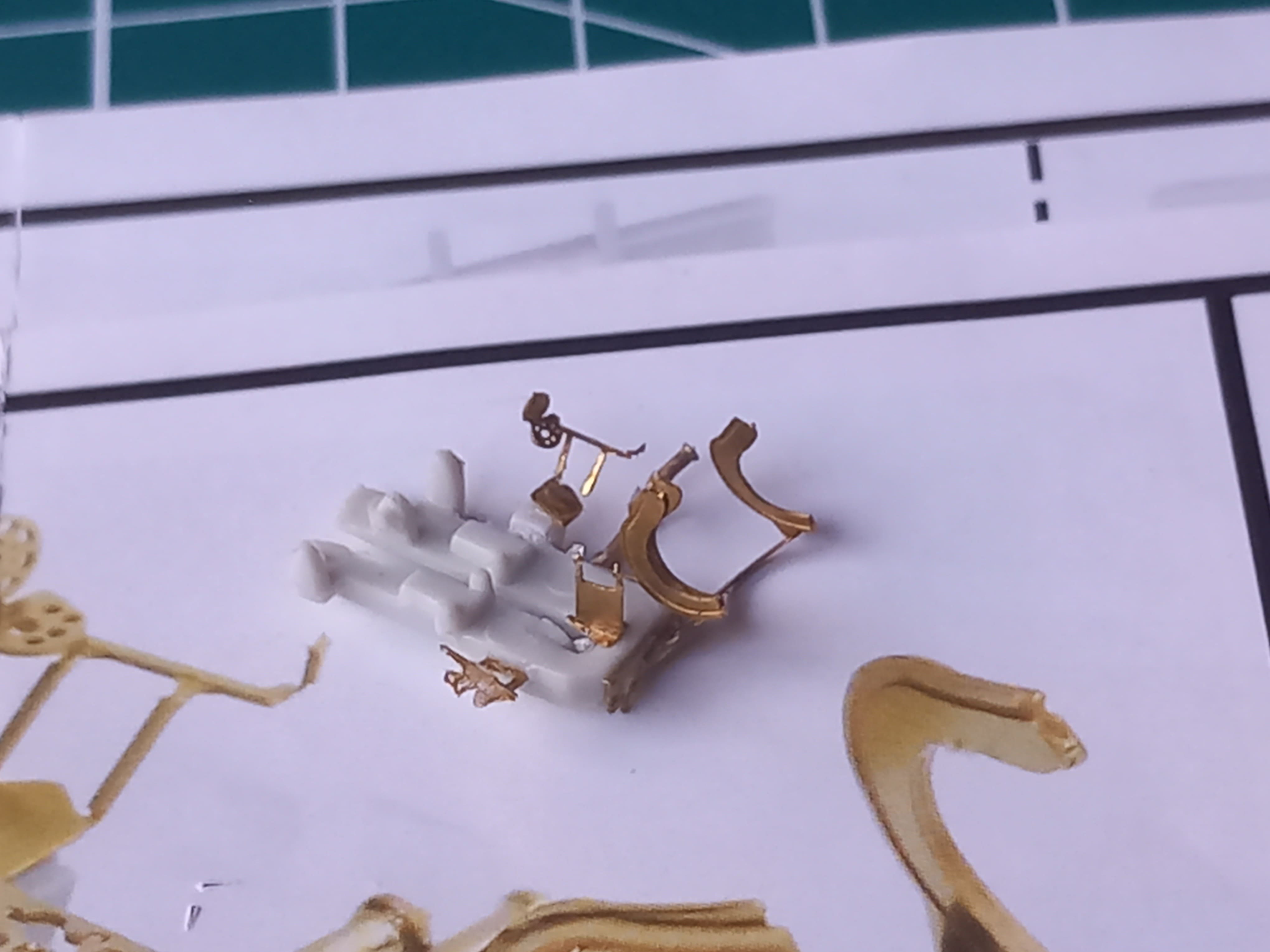 Ganz übel. Aber ich habe es so einigermassen hinbekommen. Auch das Ausrichten der beiden Zieleinrichtungen für die Kanoniere zwischen den Schlitzen der Schürze ist alles andere als einfach. Eindeutig der schwierigste Punkt bisher.
