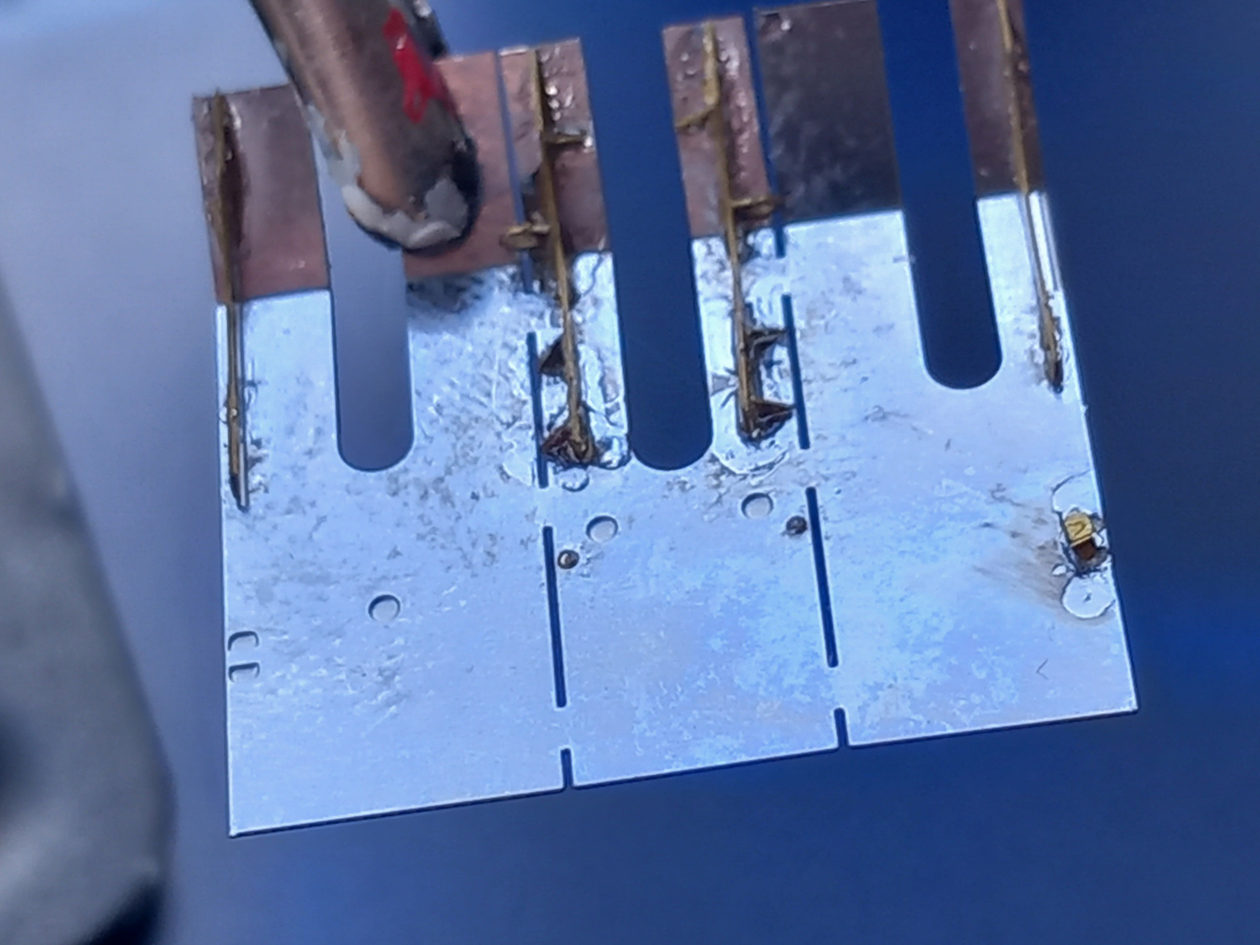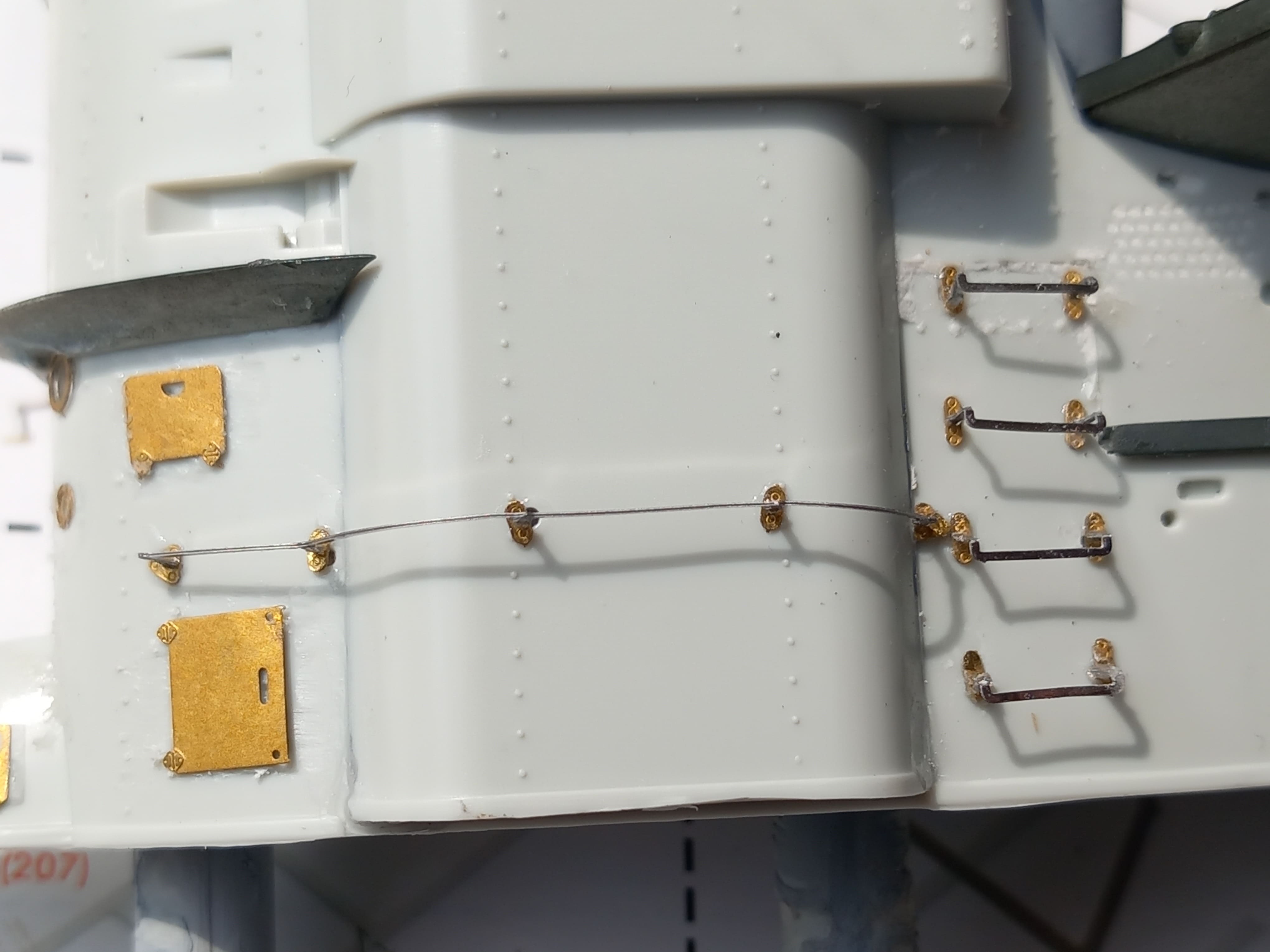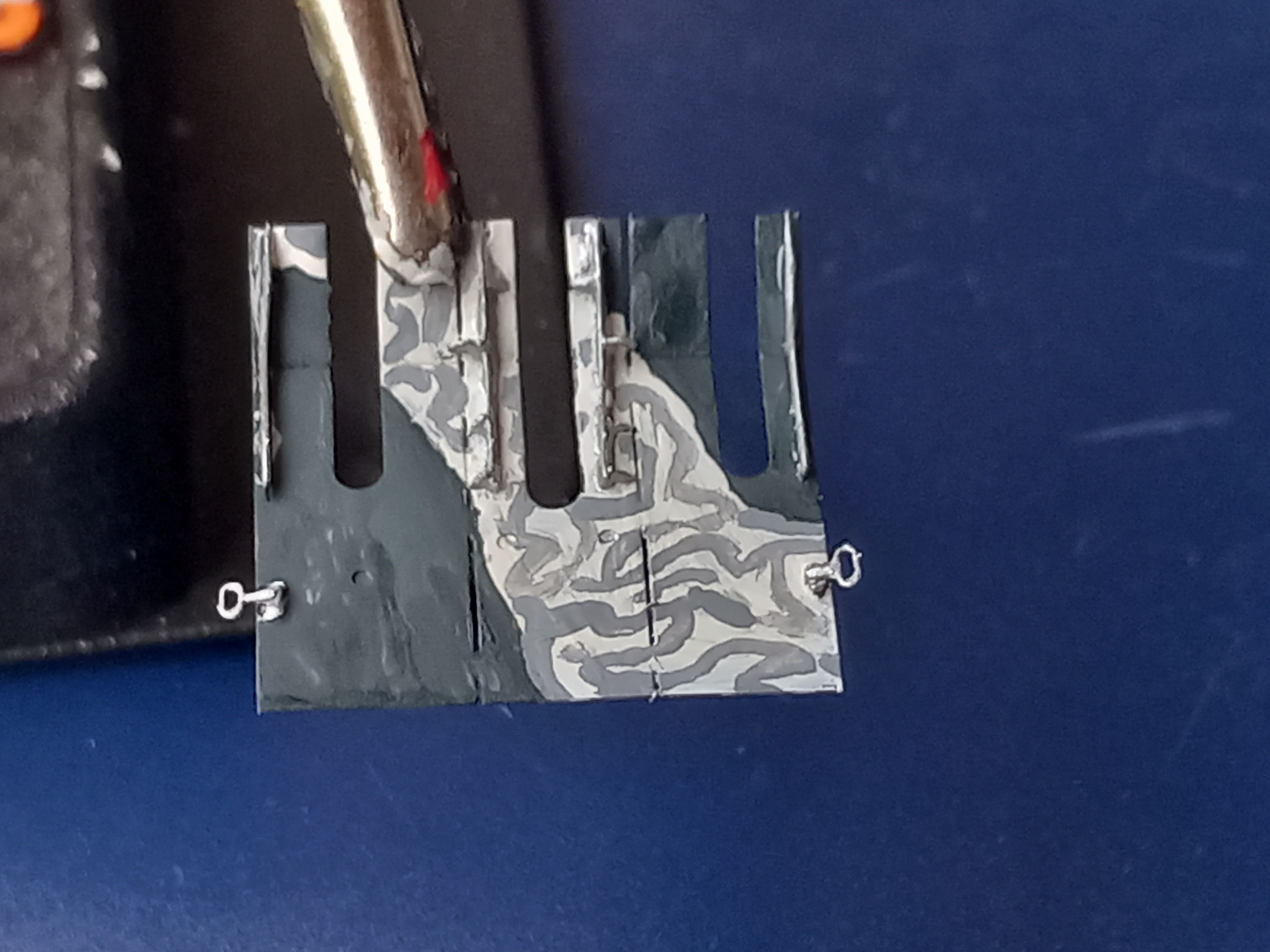 Ganz übel. Aber ich habe es so einigermassen hinbekommen. Auch das Ausrichten der beiden Zieleinrichtungen für die Kanoniere zwischen den Schlitzen der Schürze ist alles andere als einfach. Eindeutig der schwierigste Punkt bisher.