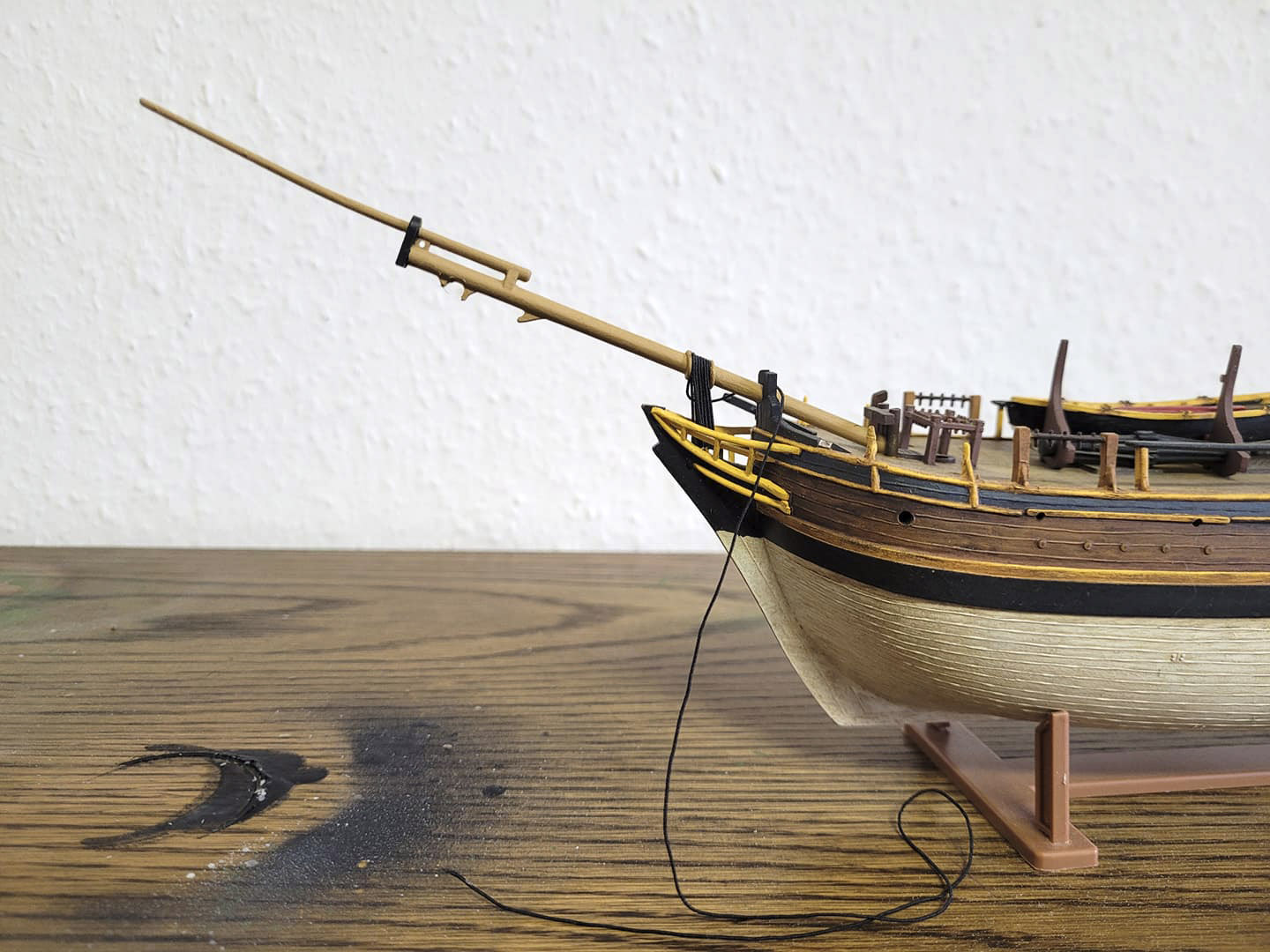 Dabei hat sich dann leider der Bugspriet der Bounty etwas verbogen. Auf den ersten Blick zwar kaum zu erkennen, aber dennoch ärgerlich und mir persönlich ein Dorn im Auge: