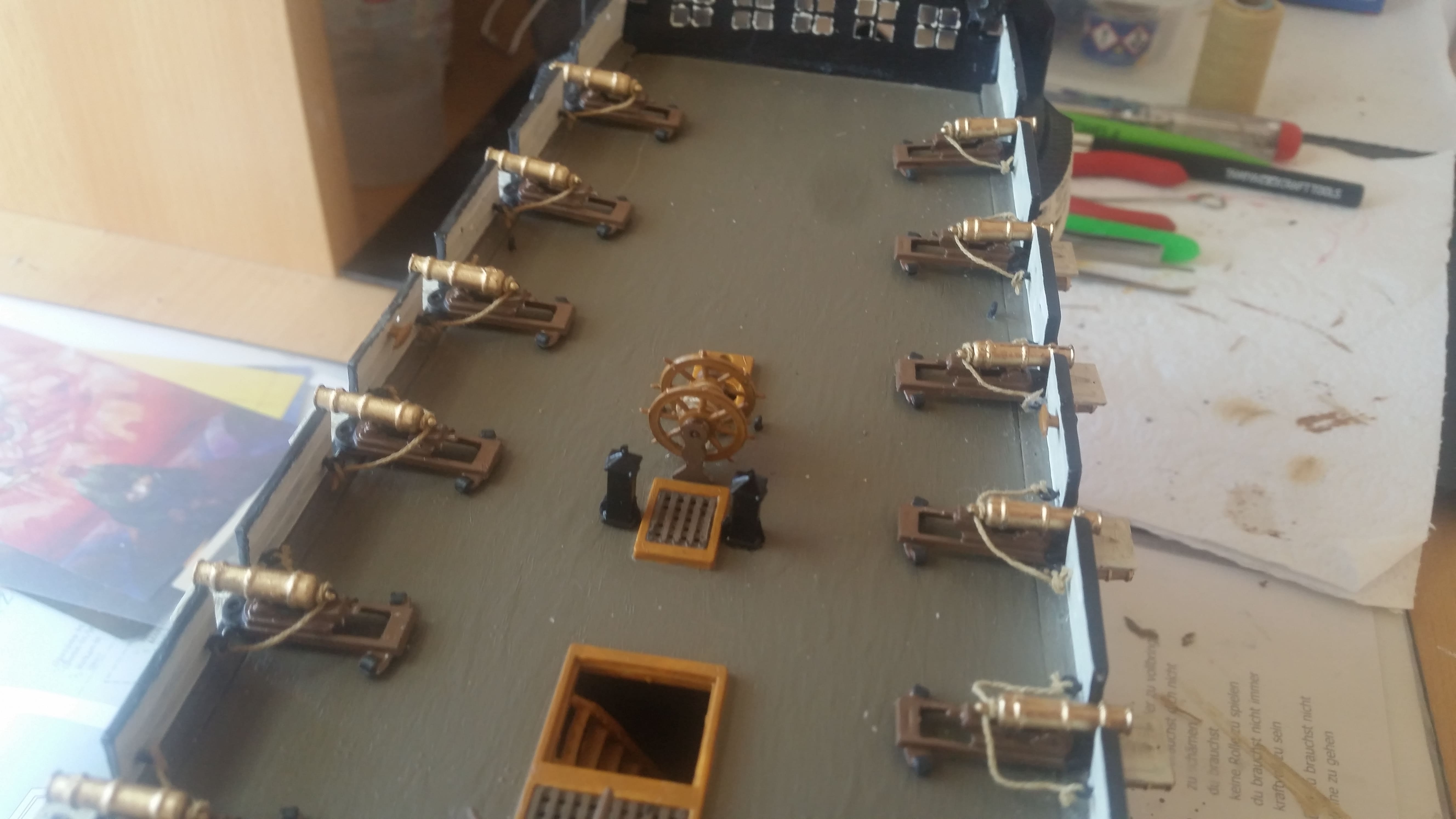 Die Aufbauarbeiten gehen voran. Als nächstes kommen die Kanonen auf dem Hauptdeck dran.