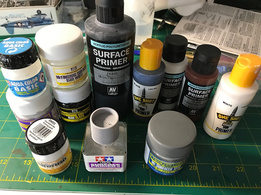 Zusammenfasseng... heutzutage würde ich nur 2 Sorten davon kaufen, das sind die Sorten die ich immer benutze: 1. Lack-Grundierung: Mr Color Surfacer (1200) und Mr Color finishing Surfacer 1500. (Dafür muss man auch den "Mr. Color Leveling Thinner" kaufen, kann ich nur empfehlen. Für mich gibt es nicht besseres.