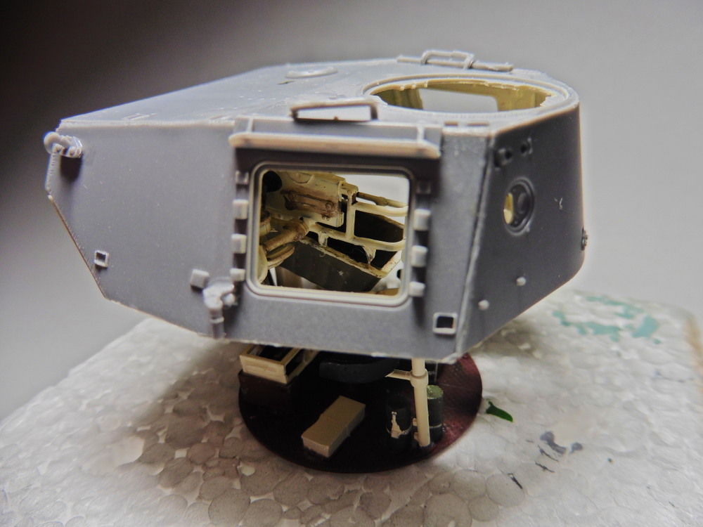 Leider hat sich ein kleines Problem eingeschlichen . Der Turm ist jetzt soweit fertig ... inkl. der Luken etc. Habe dann das Geschützrohr gebaut und drangehalten . Dieses steht jetzt 10 Grad hoch ... ich hätte es gerne grader gehabt... leider läßt sich das ganze aber nicht mehr bewegen :(