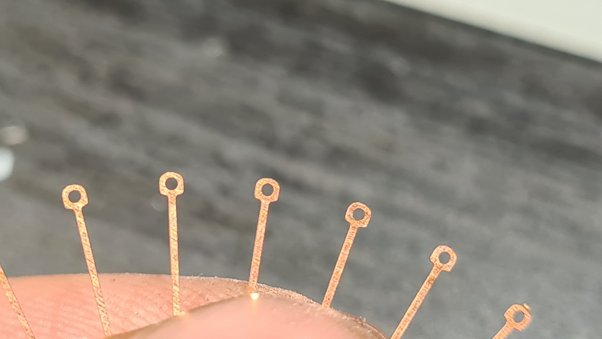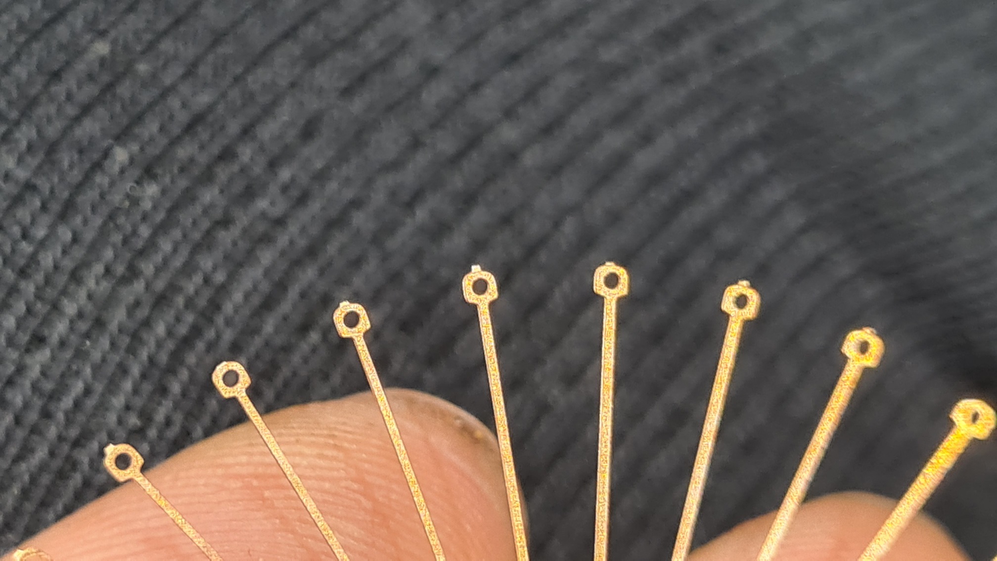 Die Spitzen müssen ordentlich versäubert werden, dazu sehr kurz zwischen Daumen und Zeigefinger nehmen (damit sich beim Feilen die jeweilige Speiche nicht verbiegt)