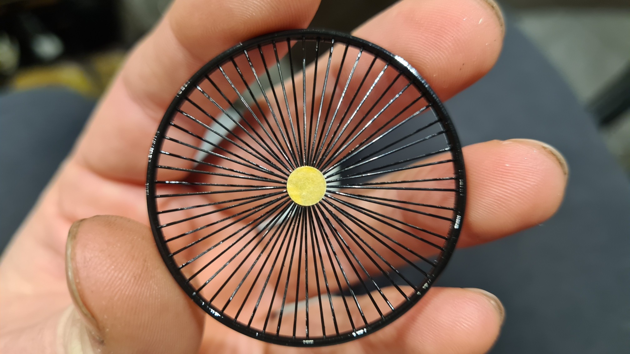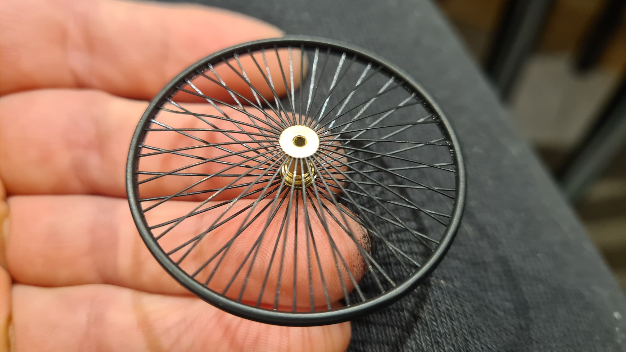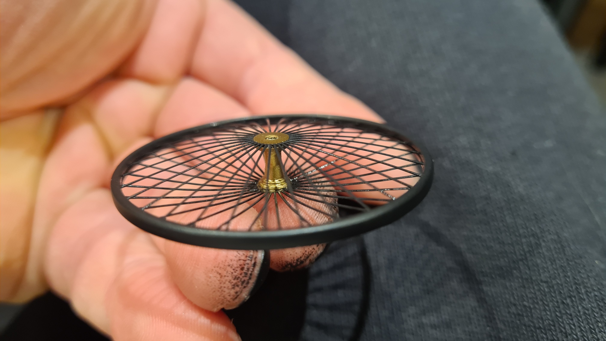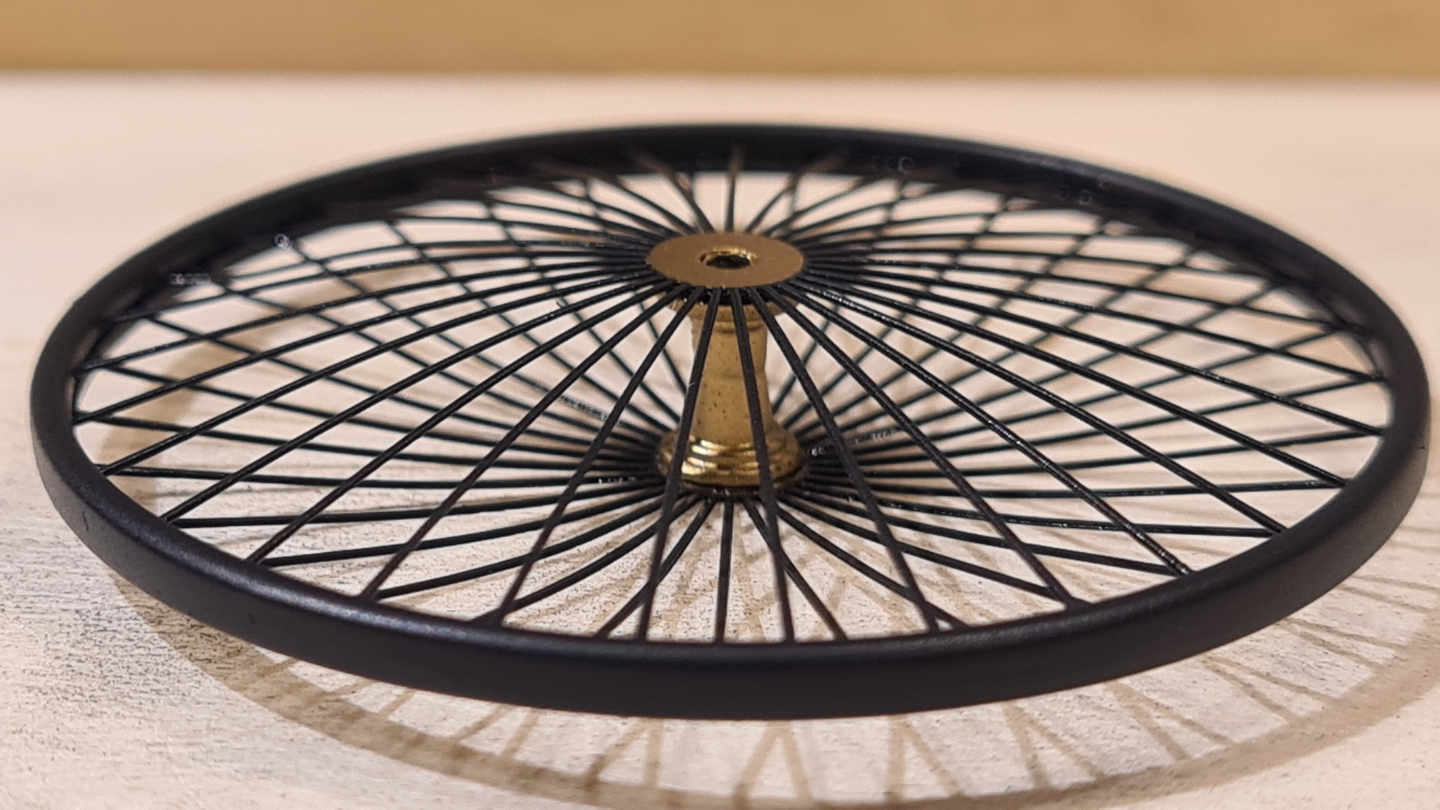 Ohne Foto. Ich habe die Speichen einzeln mit Sekundenkleber fixiert. Sicher ist sicher.