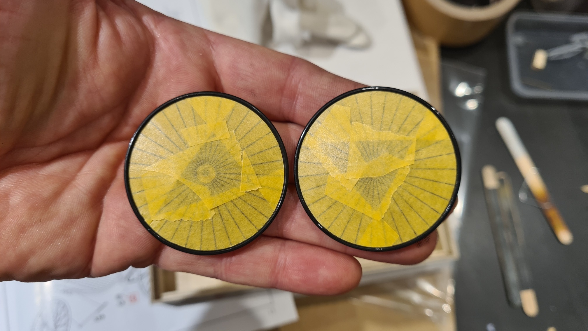 ), ohne wäre es schwierig geworden. Gewonnene Erkenntnis: immer nur kleine Segmente aus dem Klebeband (Klebekraft reduzieren!!!) schneiden, die lassen sich genauer aufkleben.