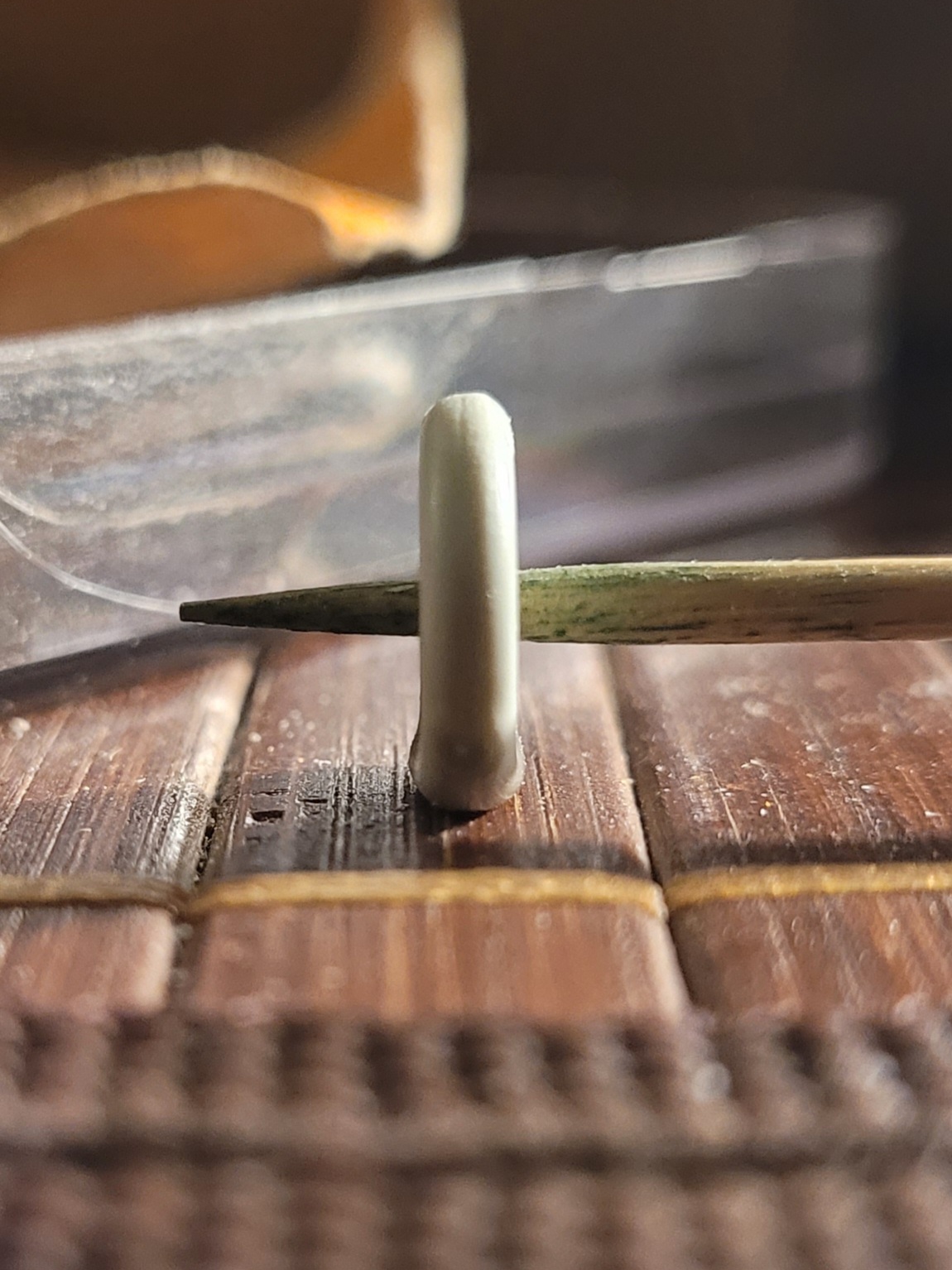 Sah bisschen sehr mager aus für meinen Geschmack. Also kurzerhand die Teile etwas eingekürzt, um ein kleines Stück dünner geschliffenem Gussast erweitert und mit dezenter Struktur versehen.