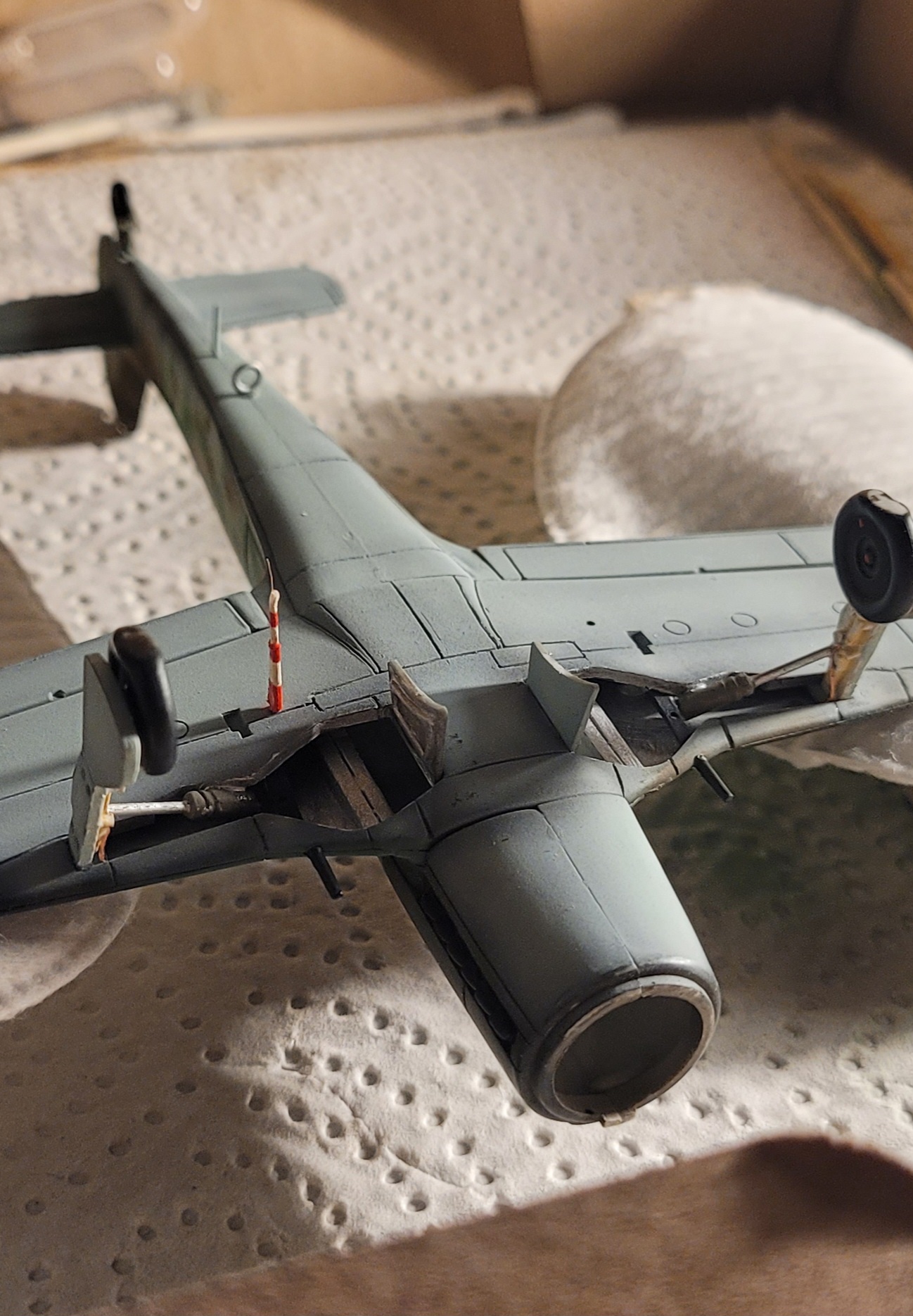 Und wäre das vom reinen "Bau" - Status her nicht so eine Last-Minute-Idee gewesen, würde die Anschlussstelle auf der Innenseite auch vernünftig aussehen. Bzw wäre das Ende zwischen den Hälften der Tragfläche verschwunden. Also Memo an mich selbst fürs nächste Mal: vorausschauend planen