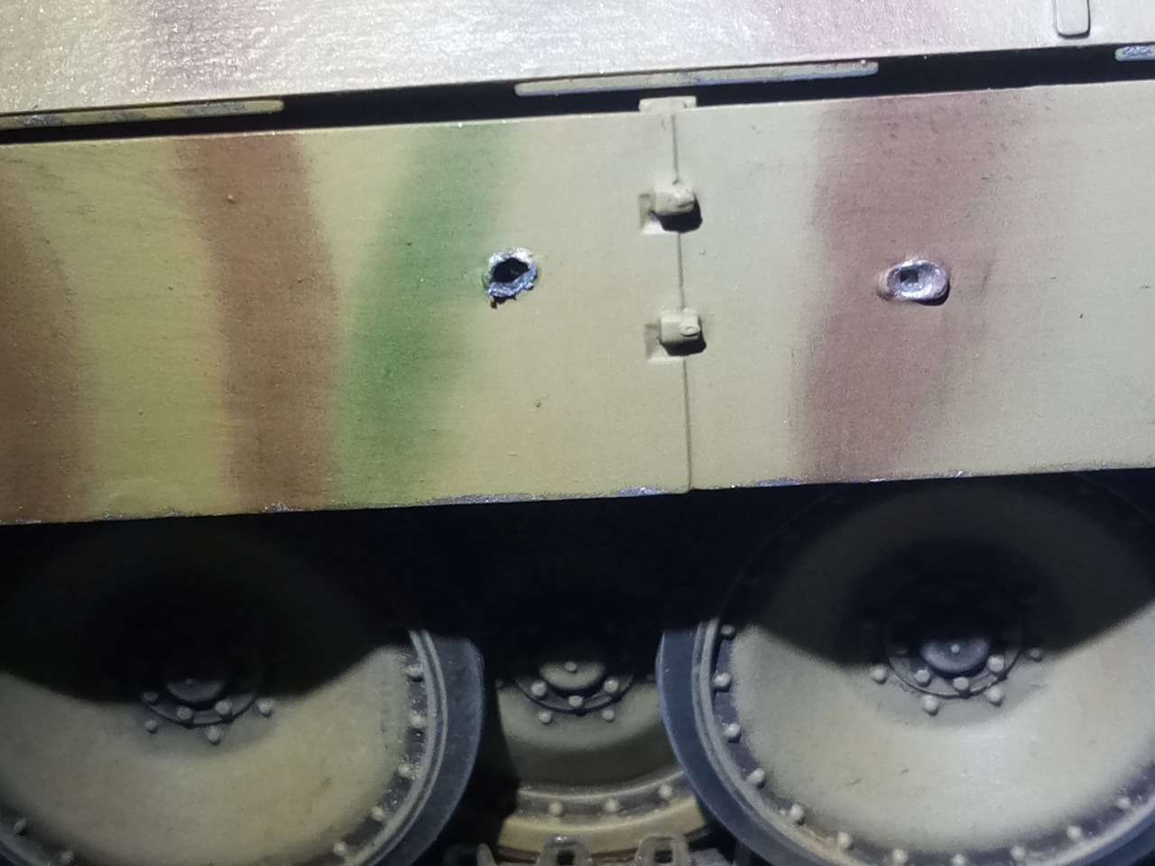 Ein zwei Einschußlöcher kamen dann auch noch in die Schürzen.