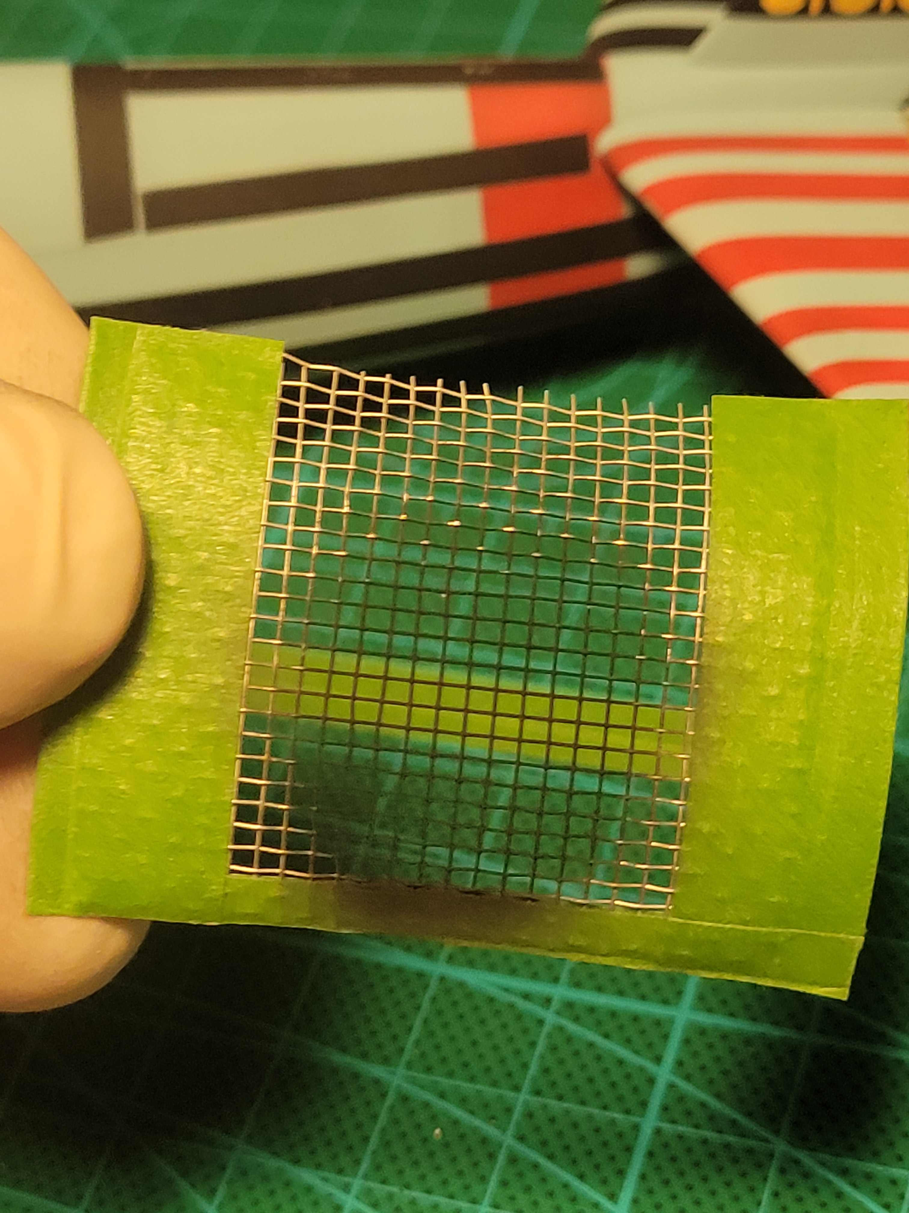 Um es kurz zu machen, heute ist der Knoten bezüglich der großen Markierungen an den Seiten endlich geplatzt. Auf die Lösung hat mich heute mein Teesieb gebracht. Also flugs ab in den Keller, da lauerte noch ne Rolle Abdeckgitter für Kellerluken. Und der Rest ging dann wie von selbst.