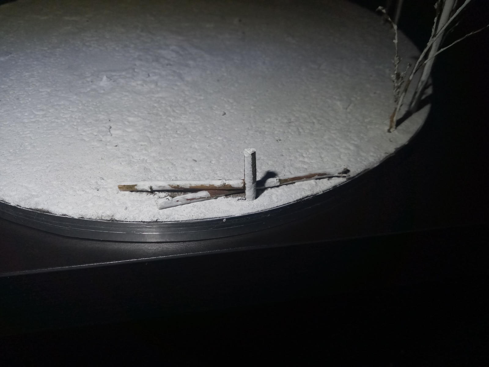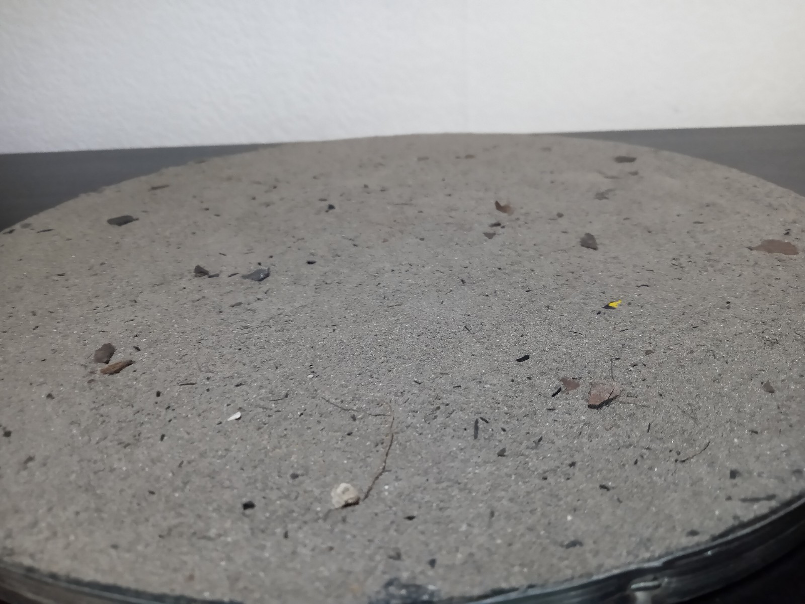 Auf die Scheibe habe ich Asche und Sand gestreut.