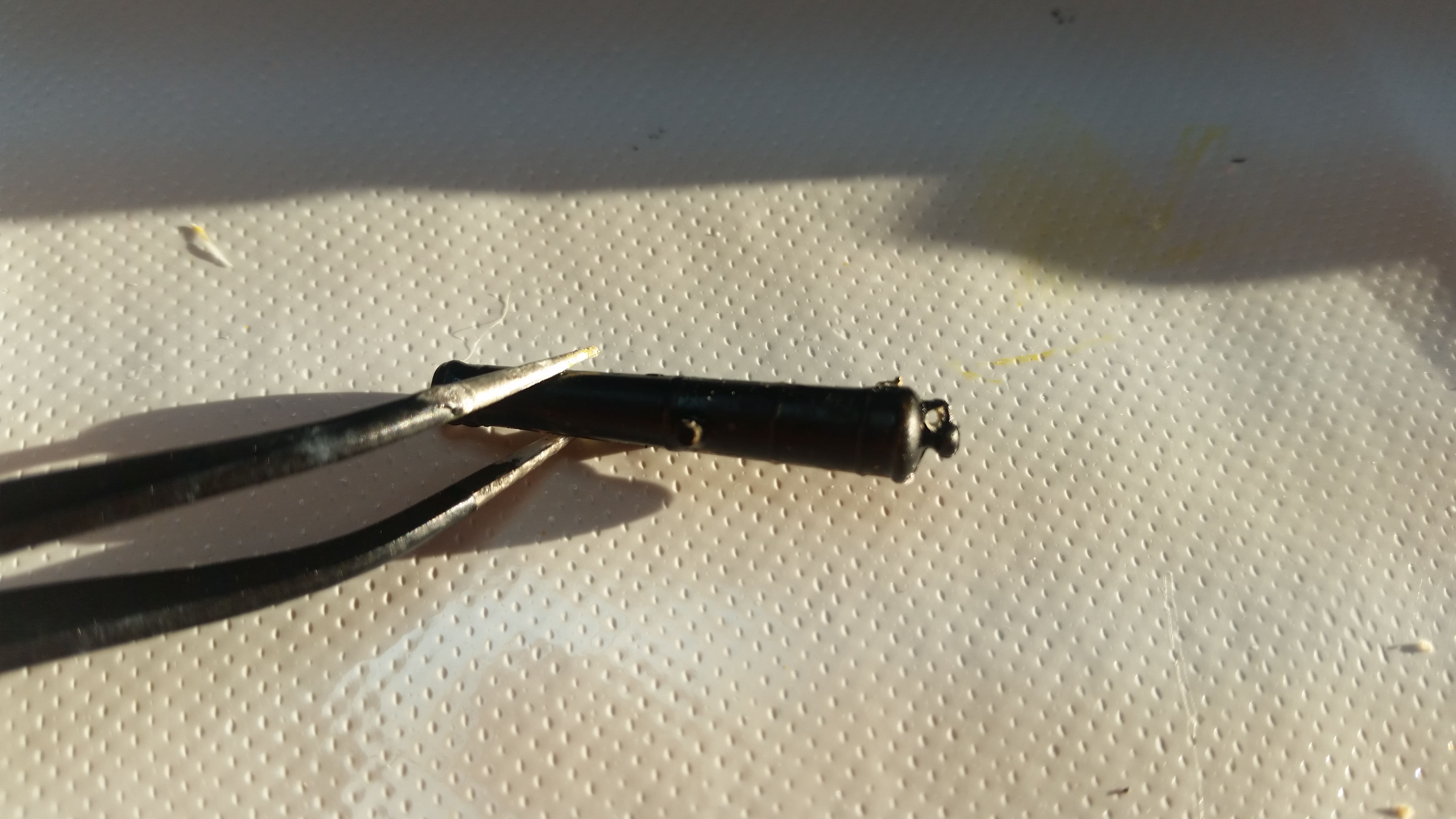 Diese Feinarbeiten mag ich. Allerdings ist es schon nervig wenn nach dem 30.ten Versuch das Zündschloß immer noch nicht da sitzt, wo es hinsoll. Einmal klappt es beim ersten Mal, dann dauert es fast 20 Minuten bis ich das Teil richtig plaziert habe. Auch die Augbolzen mit den Ringen haben sind nicht so einfach. Deshalb mache ich hintereinander auch höchstens 2 Geschütze. Gruß Ingo