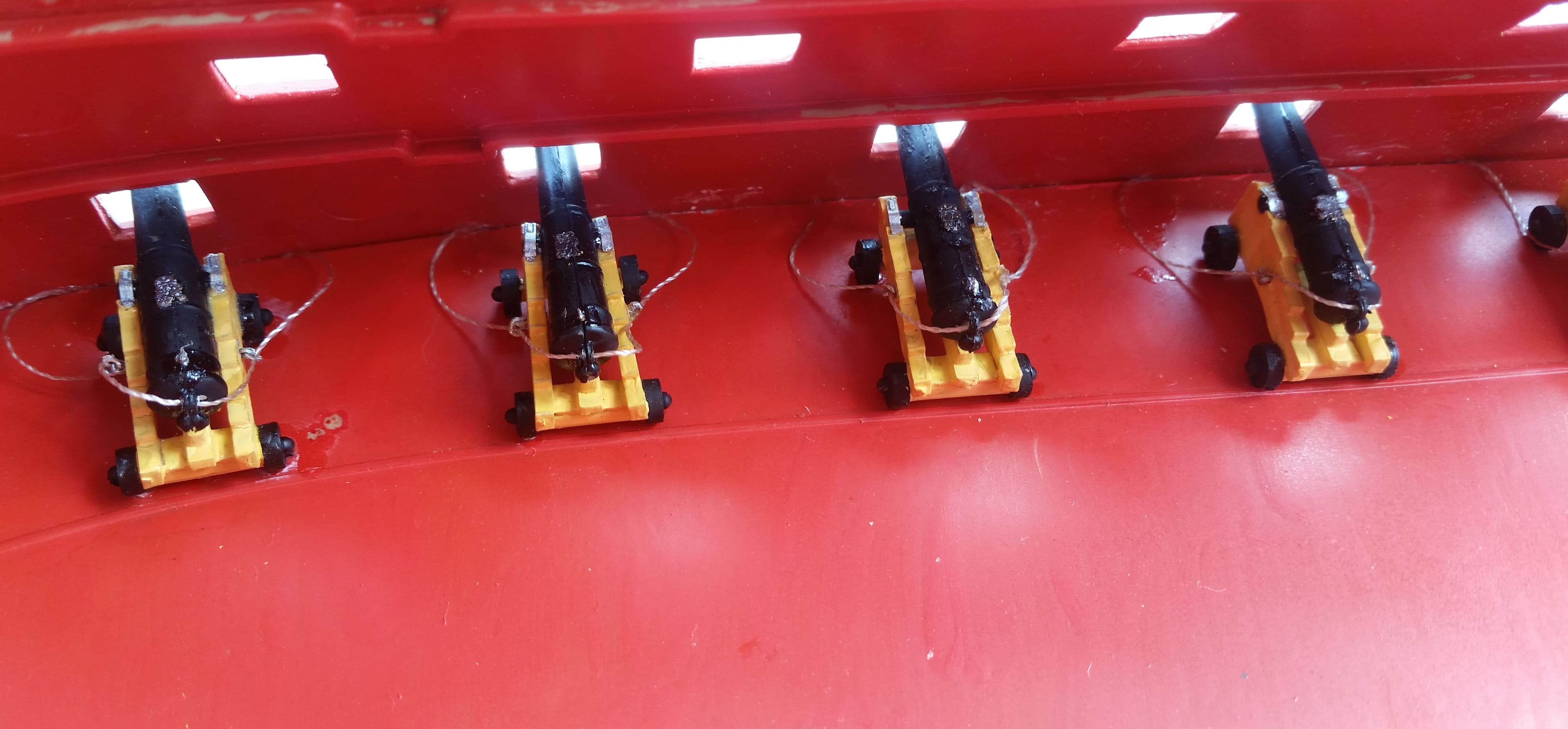 Du hast dir die Mühe mit den Tauen an den Kanonen gemacht, aber sieht man die später überhaupt noch?