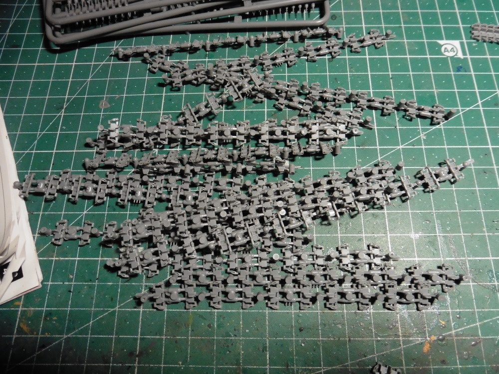Ich meide Bausätze mit beweglichen Einzelgliederketten. Die Magic Tracks von Dragon waren noch OK, weil sie bereits vom Gussast getrennt sind, aber sowas mit Pins ist für mich einfach nur die Modellbauhölle. Ich würde es auch wie HansW machen.