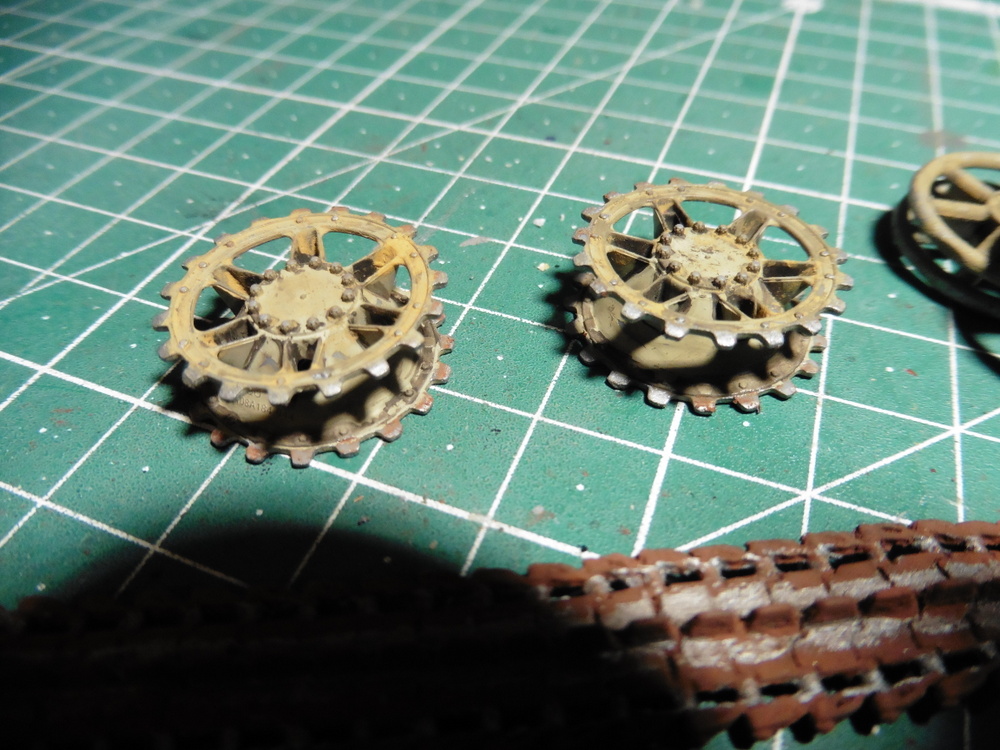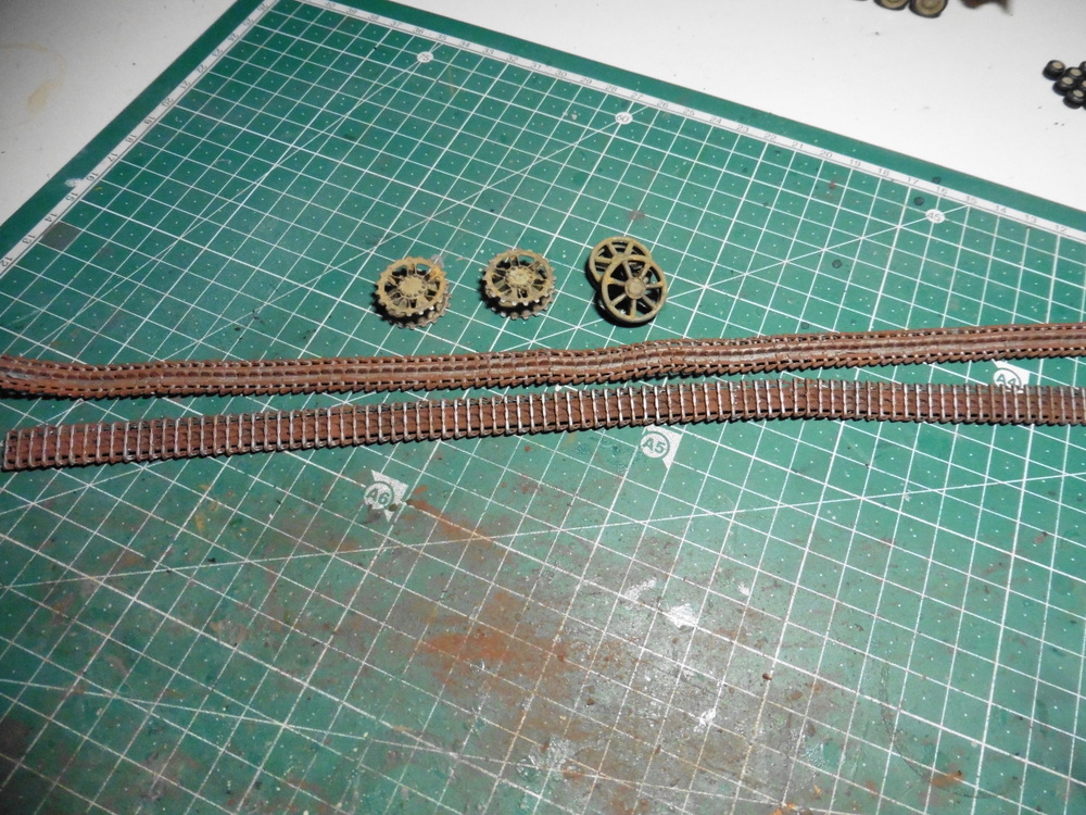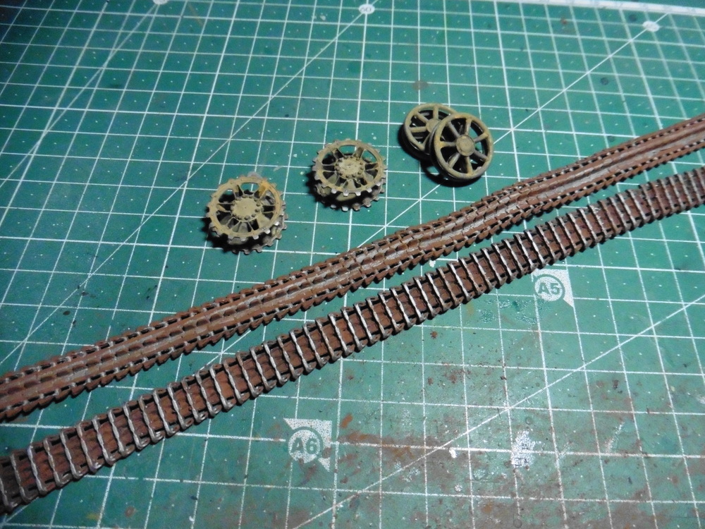 Netter weise musten beim bemalen der Ketten natürlich wieder einige Bolzen ihren Platz verlassen .... na ja nun sind die Ketten dran .