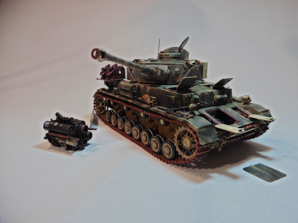 liebe Freunde des Modellbaus , ich habs geschafft und meinen Panzer 4 so fertig gestellt wie er für das Diorama gebraucht wird .