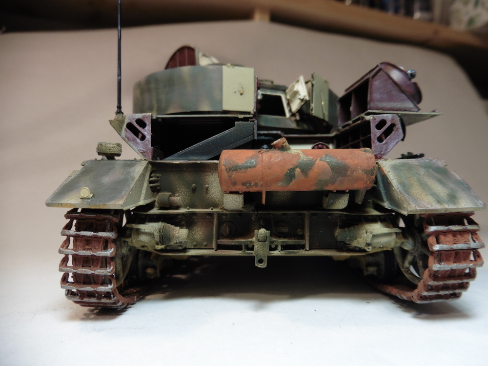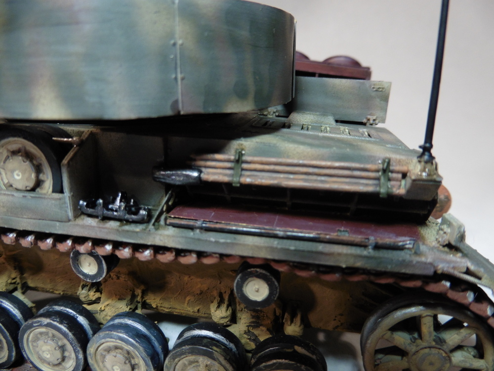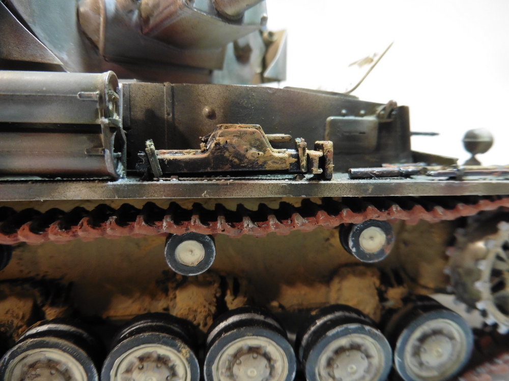 Habe die Ketten erst einmal schwarz grundiert ... danach dann mit Rostfarbe von Vallejo und dann noch mit Pigmenten Rost von Revell nachgearbeitet . Und zu guiter letzt habe ich dann die Bereiche in Eisen gestrichen wo halt Abnutzungsspuren sind .