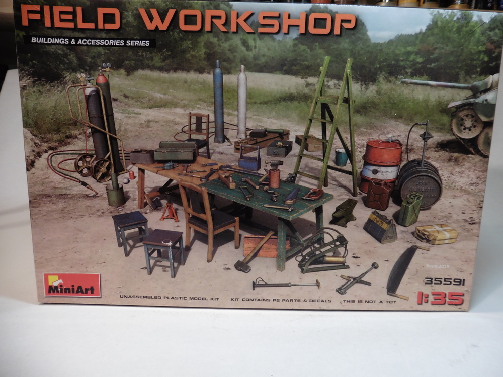 Tja und für das Dio an sich hatte ich mir erst überlegt die Platte weg zu lassen und eine eigene größere zu bauen . Ich wollte erst ein LKW und diverse ander Dinge dazu bauen . Habe das ganze aber erst einmal wieder verworfen . Trotz allem war mir aber die Werkstattausrüstung zu spatanisch. Ich habe mir darum noch ein zusätzliches Set gekauft . Hier sind dann auch Fässer und Schneidbrenner und Flaschen dabei .