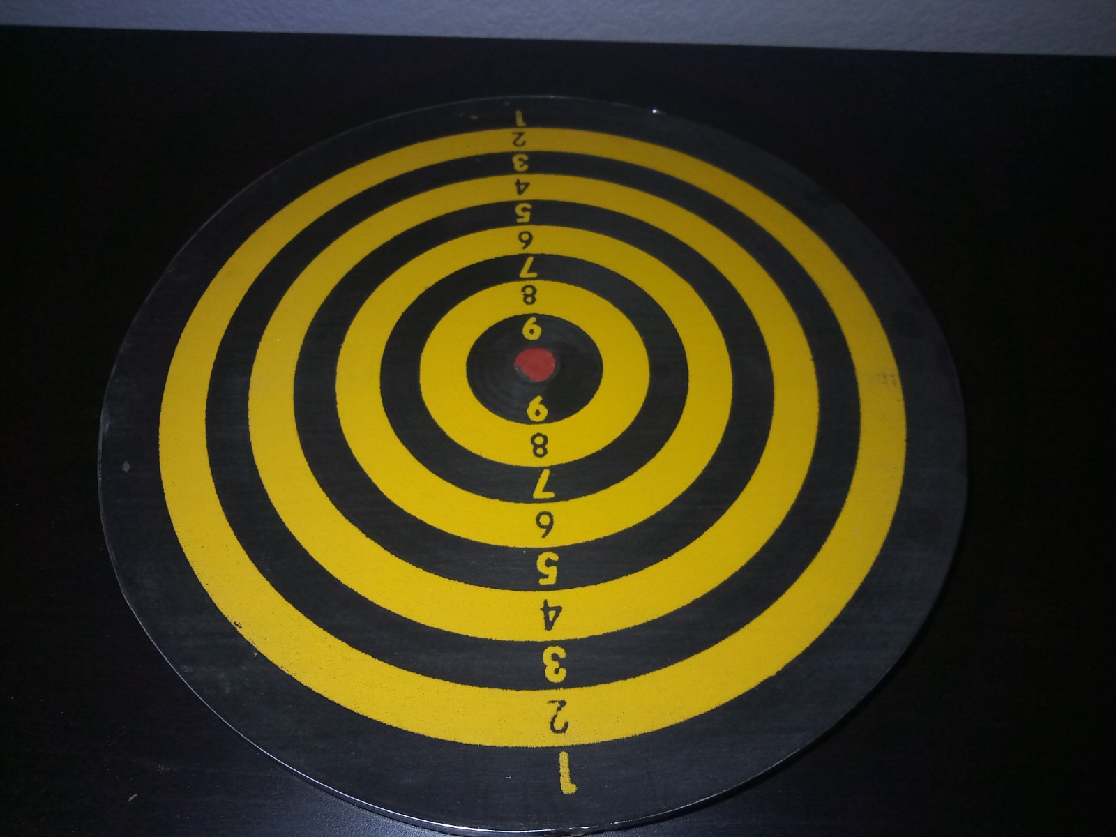 Dazu habe ich mir vor einiger Zeit Spielzeugdartscheiben besorgt.