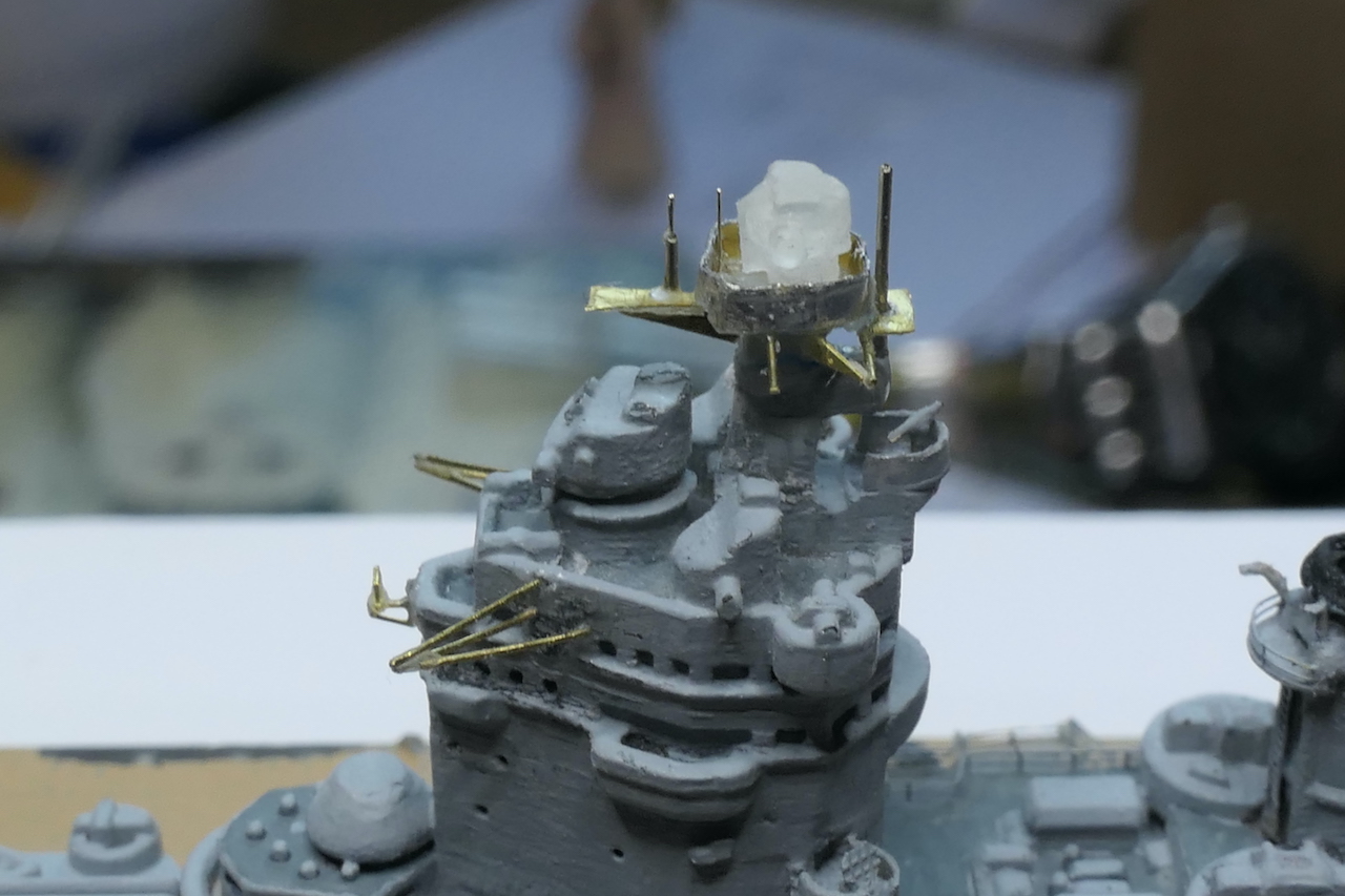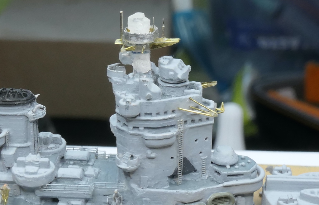 Dann waren die vorderen Aufbauten über der Kommandobrücke dran: Insbesondere das "Nest" hinter dem Entfernungsmesser der Hauptartillerie sah 1941 anders aus als beim Rohlung Zustand 1942/43.:
