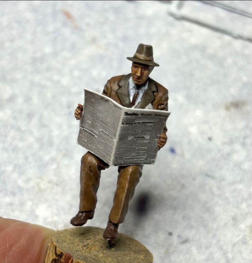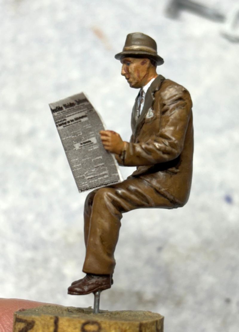 Mittlerweile habe ich den ersten Passagier fertig. Toll finde ich, dass Miniart auch die Zeitung beilegt. Bei dem, was man lesen kann, stimmt sogar die Rechtschreibung. Ein schönes Detail.