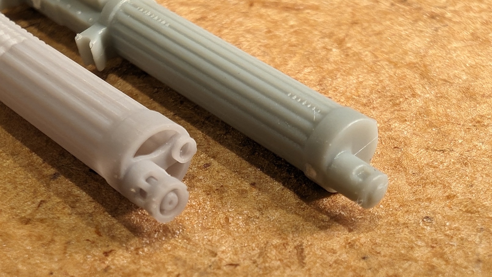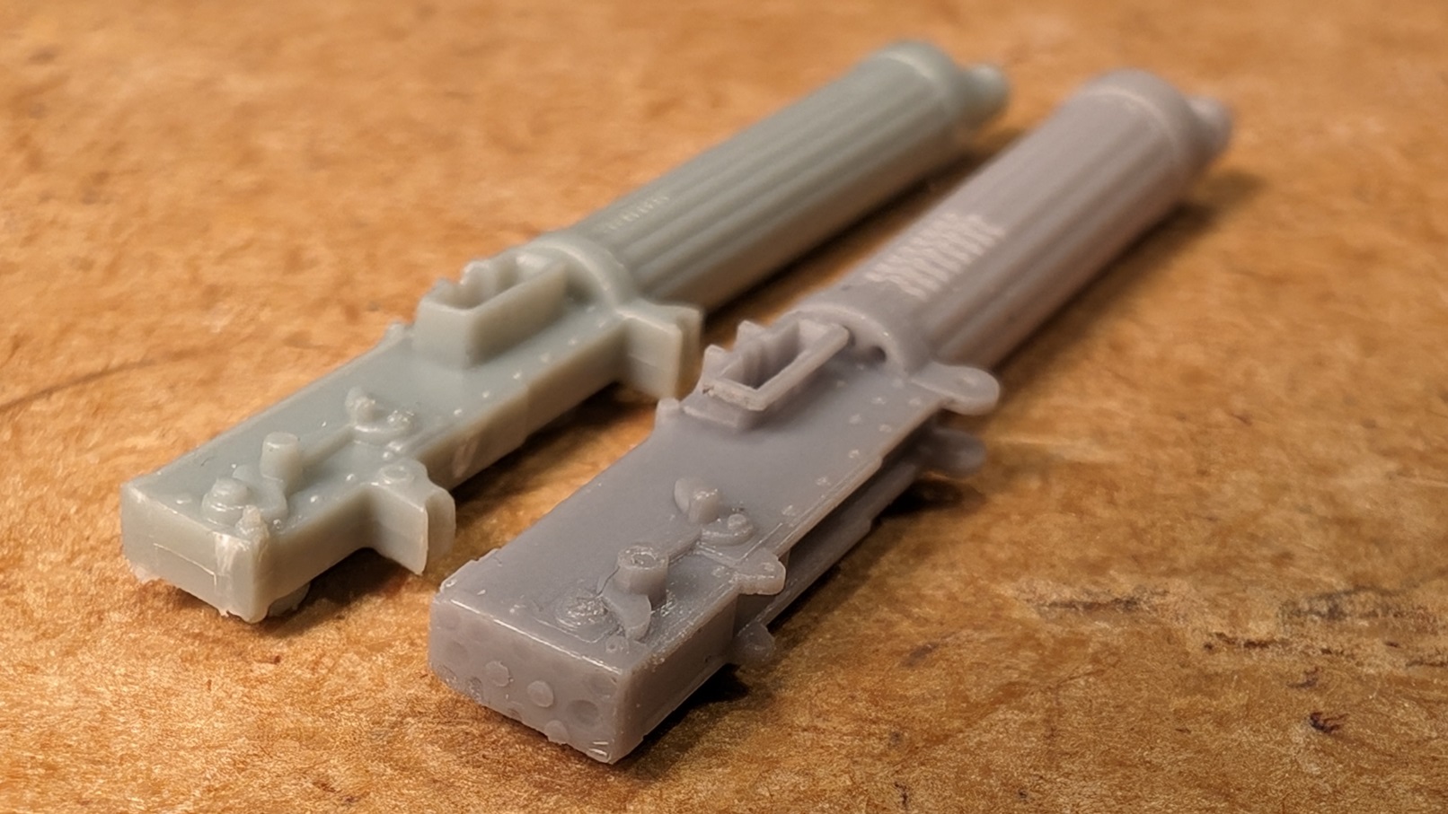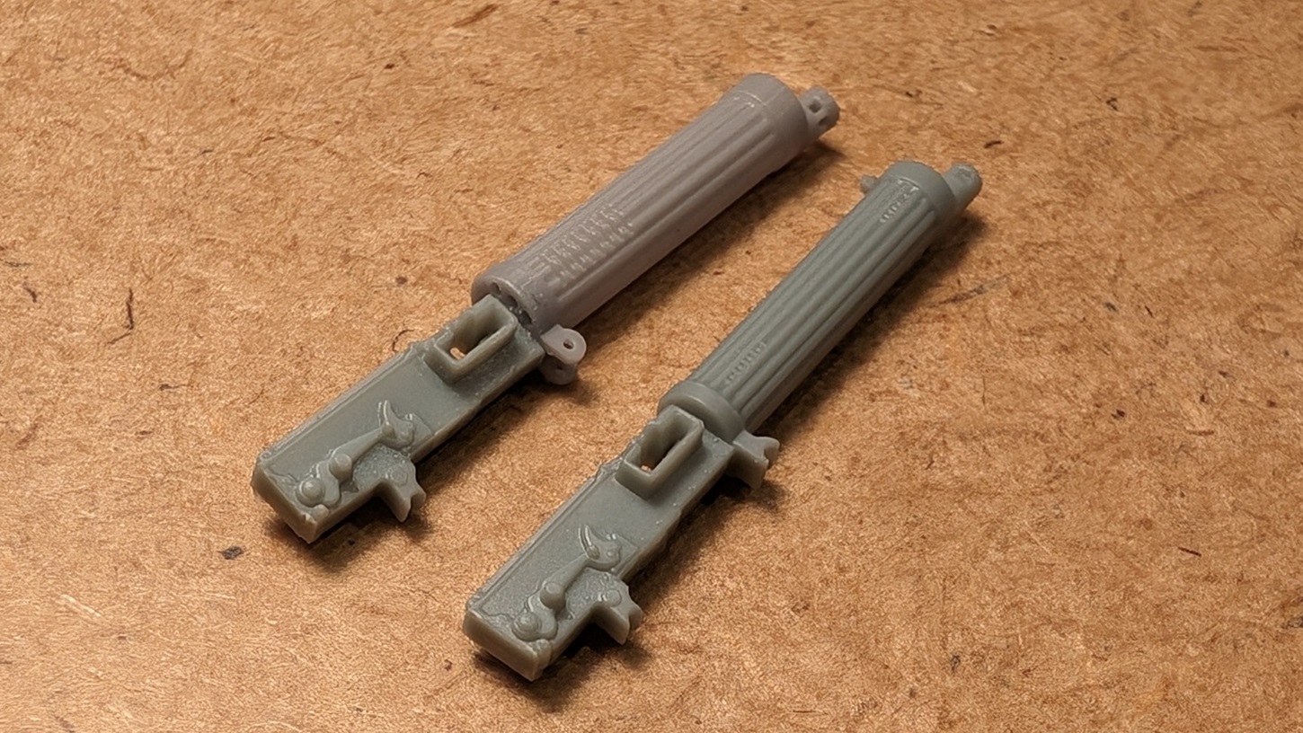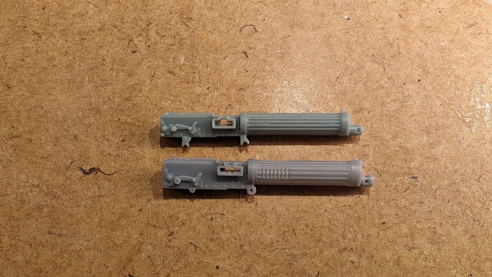 Ich fange mal mit den MGs an. Die beiden Vickers, so wie sie im Bausatz enthalten sind, sind eigentlich ganz ordentlich. Aber schaut man sich an, waas Gaspatch da liefert, gibts doch noch deutlich Luft nach oben. Auf nachfolgenden Bildern das hellere Gaspatchmodell im Vergleich zum dunkleren WnW Modell.
