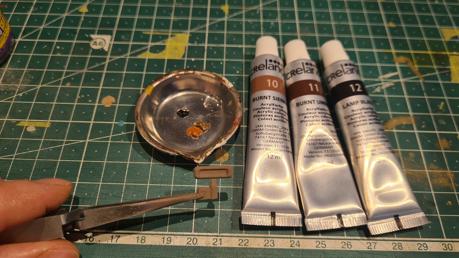 Mit dem Kreisschneider (eine lohnenden Investition, man braucht ihn immer wieder, wenn man nicht mit ihm rechnet) hatte ich dann noch Masken für die Kokaden angefertigt und diese exakt abgeklebt.